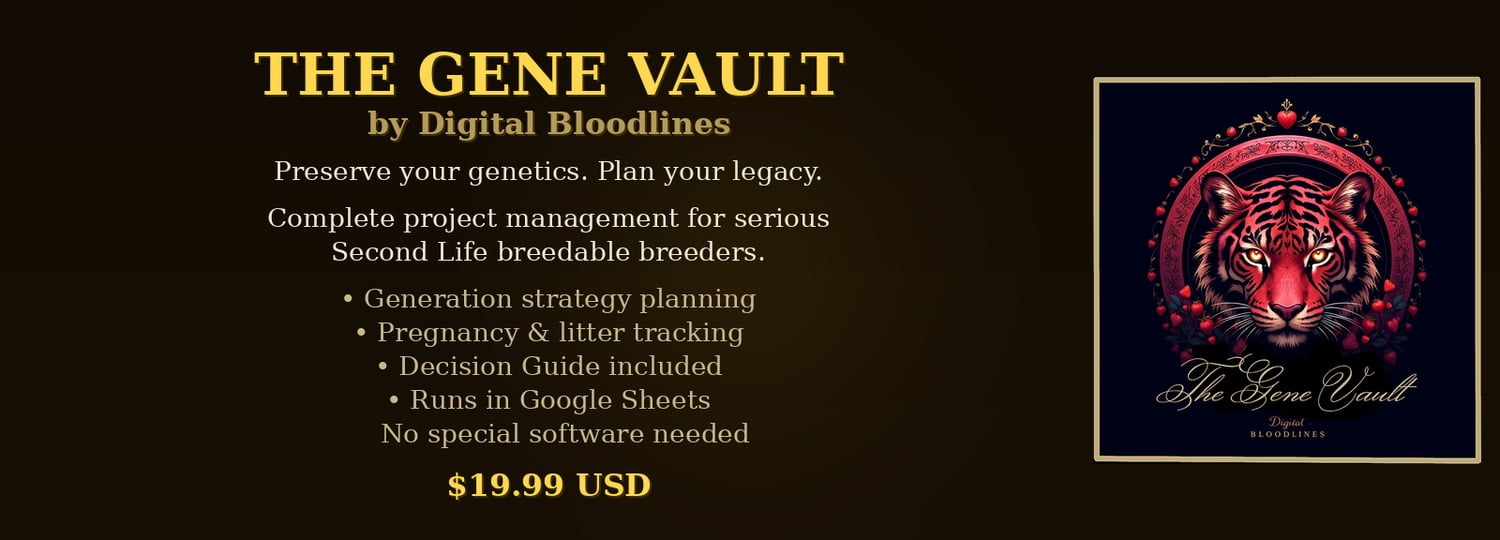 The Gene Vault is a complete project management system built specifically for serious Second Life breedable animal breeders.