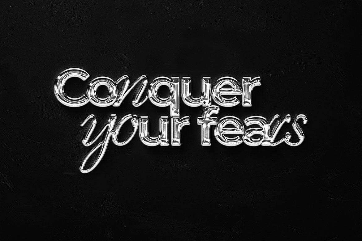 Bold, shiny, retro-modern, and visually striking, evoking both vintage signage and contemporary metallic design.