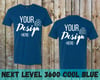 Front and Back Cool Blue Tshirt Mockup, Cool Blue Next Level 3600 T-shirt MockUp, Dark Wood Background, Instant Download