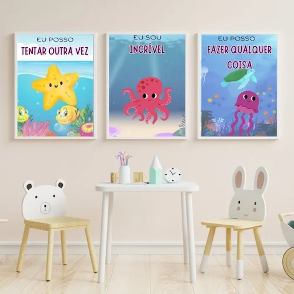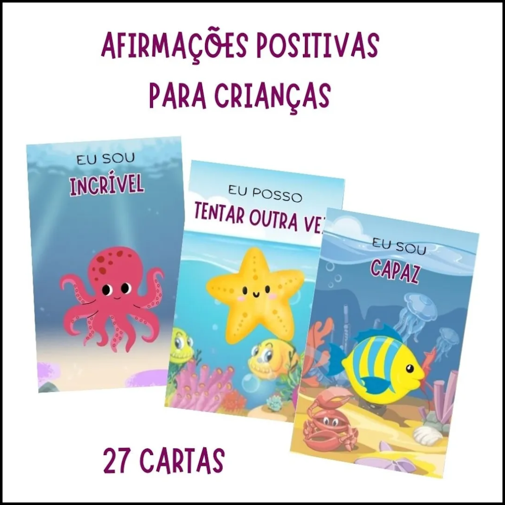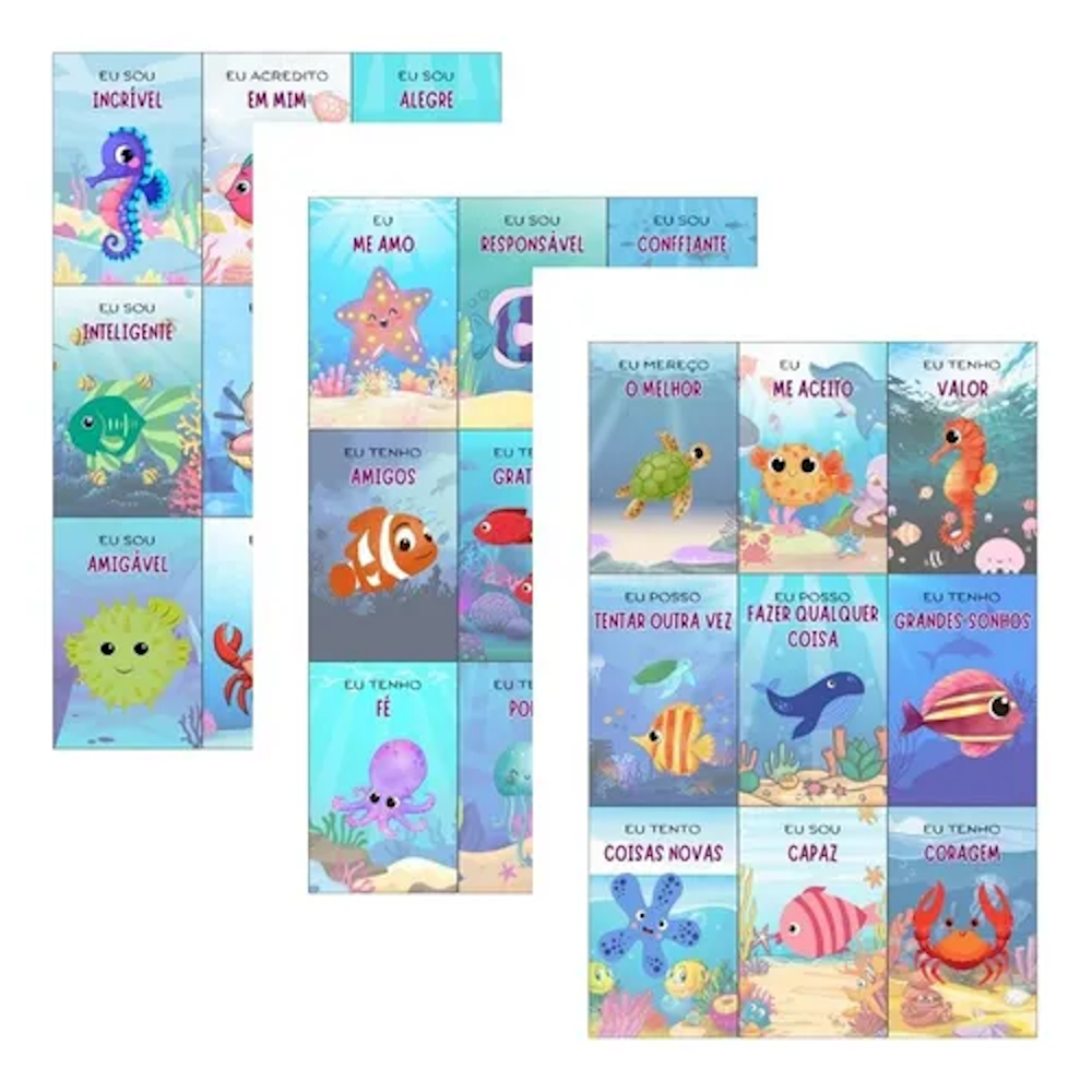 Cartões de afirmação para crianças, com desenhos do fundo do mar.