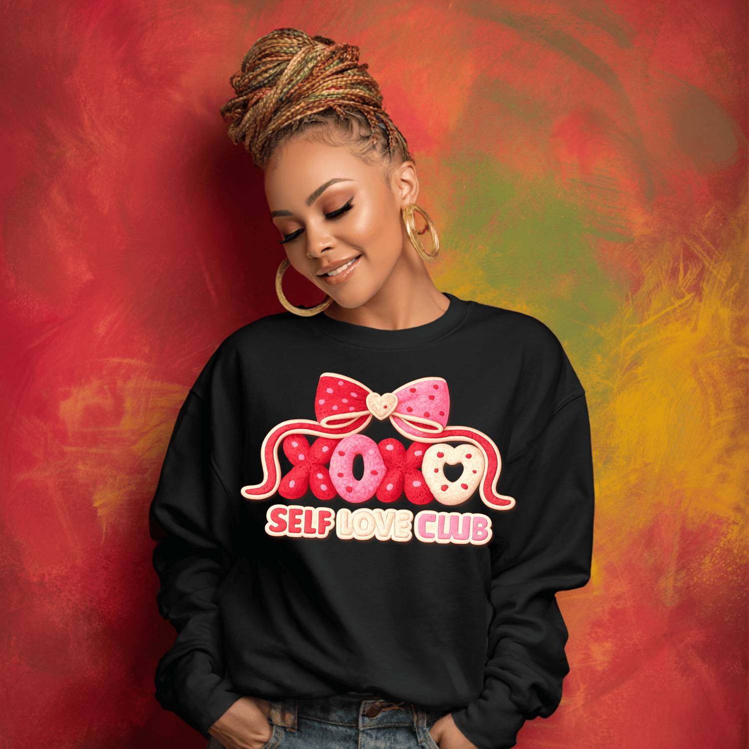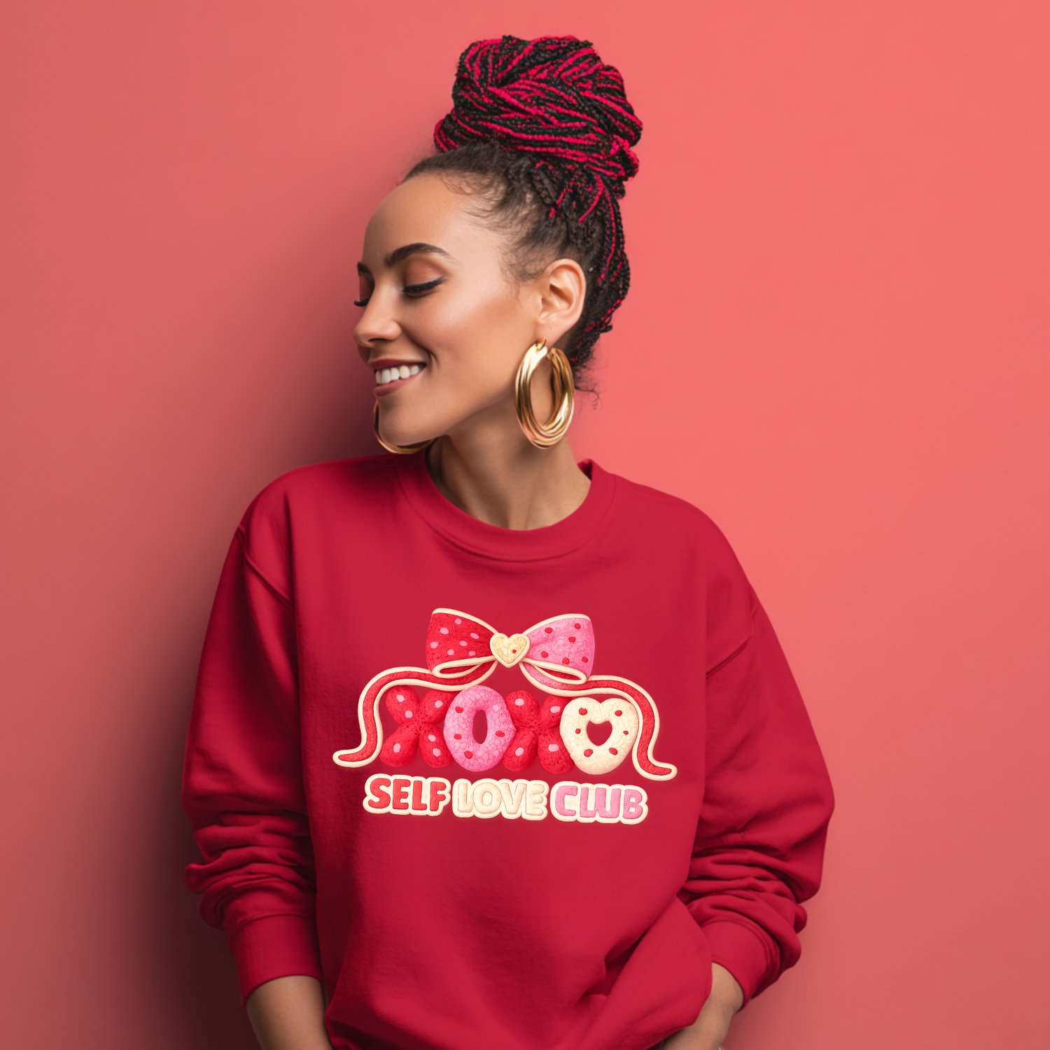 The XOXO Self Love Club design is the perfect blend of cute, cozy, and confidence-boosting. Featuring soft pink tones, heart details, playful bows, and an adorable textured style, this design celebrates self-love in the sweetest way possible.