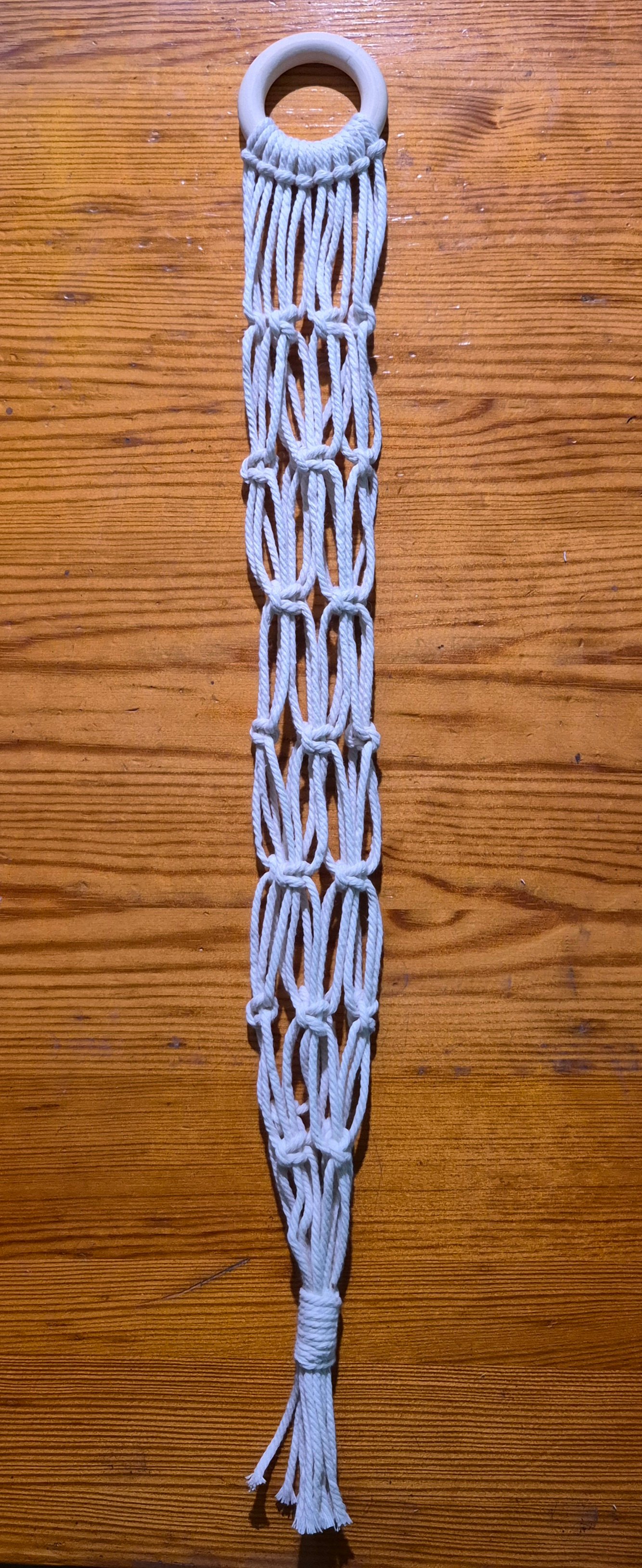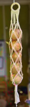 Ett stilrent och stabilt löknät i makramé som håller upp till sex normalstora lökar. Perfekt för att spara plats och få en mer levande känsla i köket eller skafferiet.