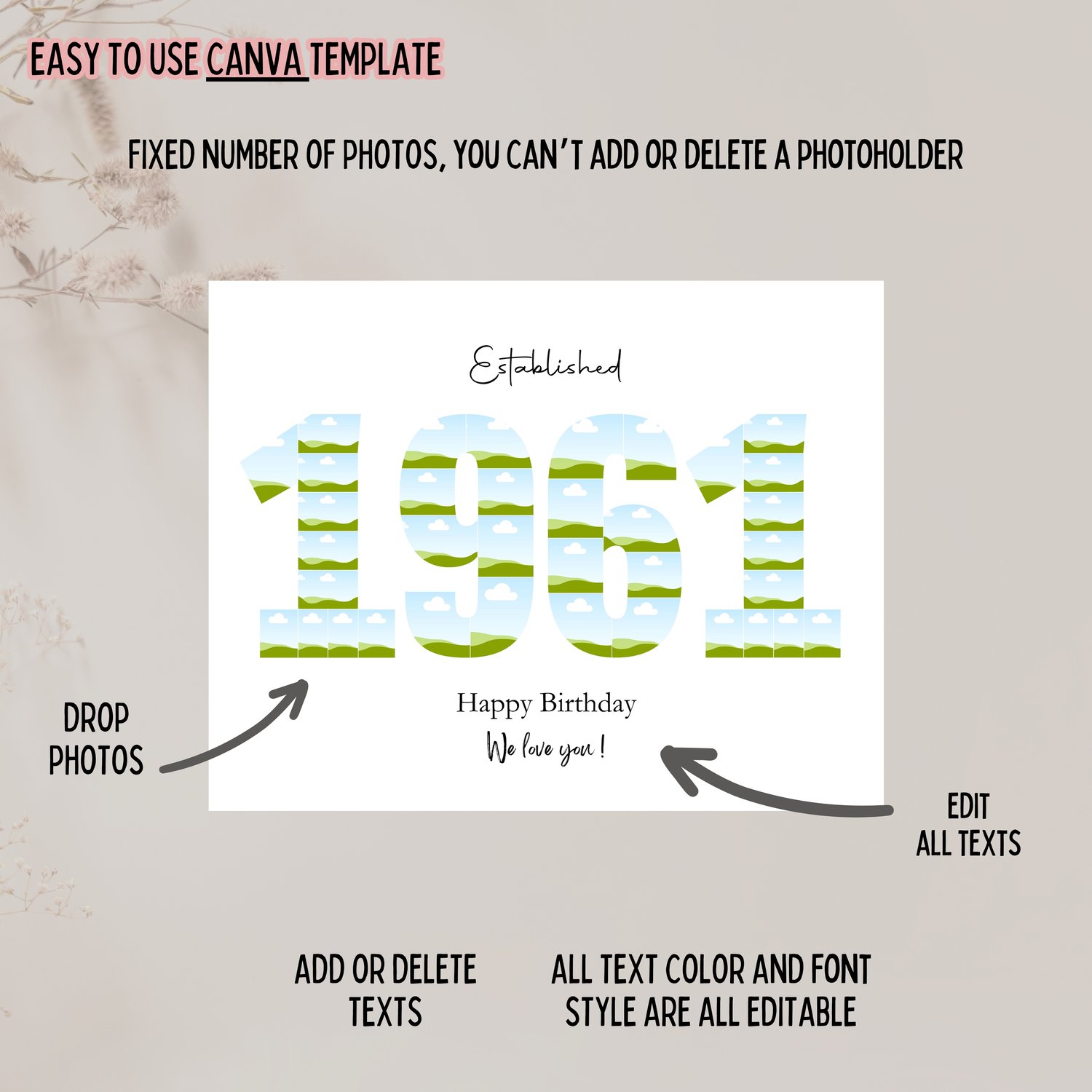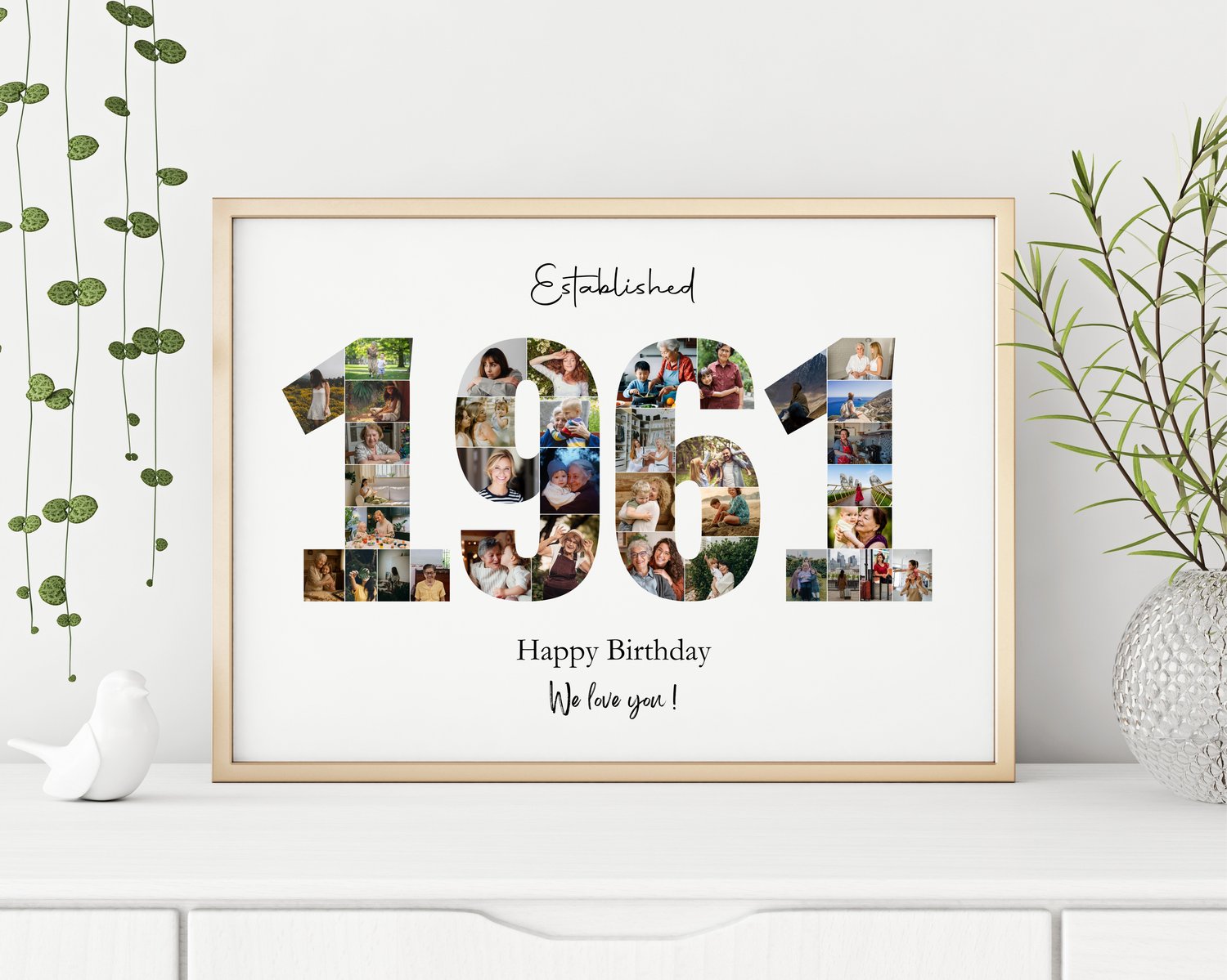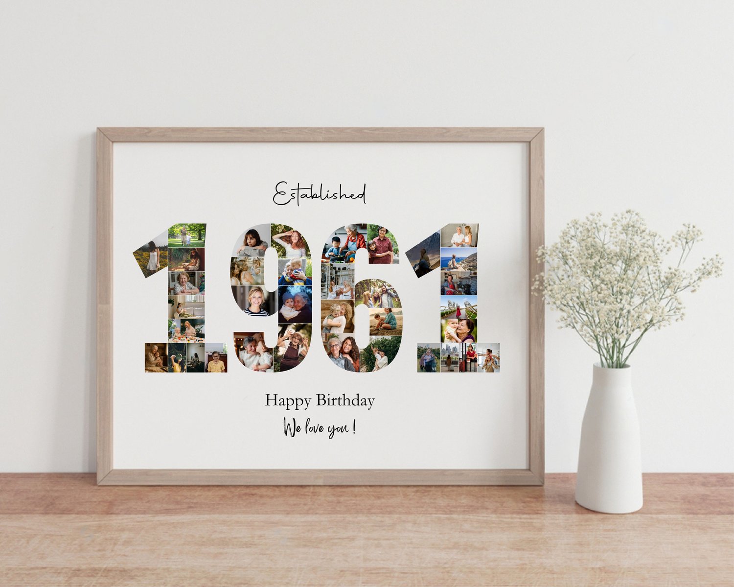 1961 Photo Collage Template, Birthday Anniversary Print, Gift for Him
