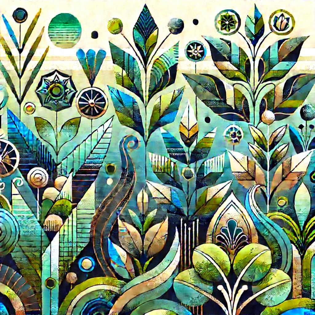 Floral Abstraction is a captivating piece of modern art that merges the elegance of nature with the vibrancy of abstract design. Featuring a harmonious blend of stylized plant shapes and intricate geometric patterns, this artwork bursts with life through its dynamic use of color and form. Perfect for those who appreciate contemporary aesthetics and the beauty of botanical elements, this piece adds a sophisticated yet lively touch to any space.