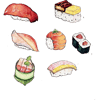 319 hand-picked PNGs featuring sushi, sashimi, rolls, nigiri, temaki, and bento elements