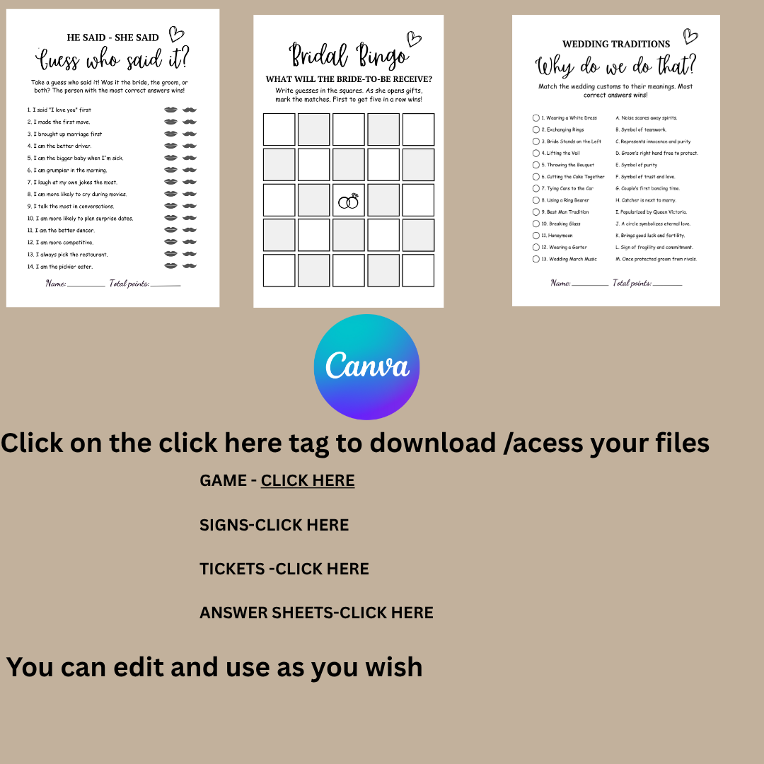 Edit easily in Canva (free account works), print at home, or use digitally for hosting online bridal showers.