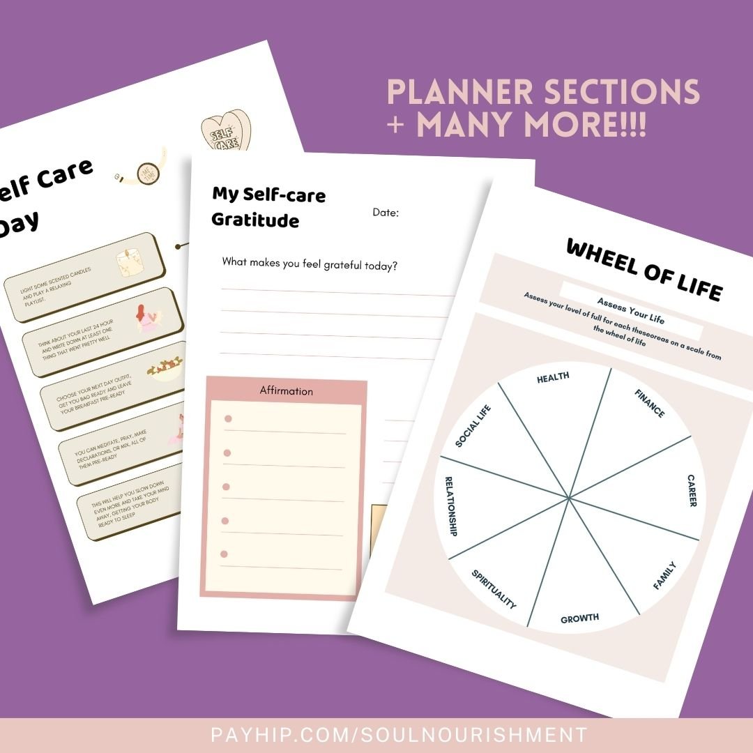- Self-Care Journal: Reflect on your daily self-care practices and progress.