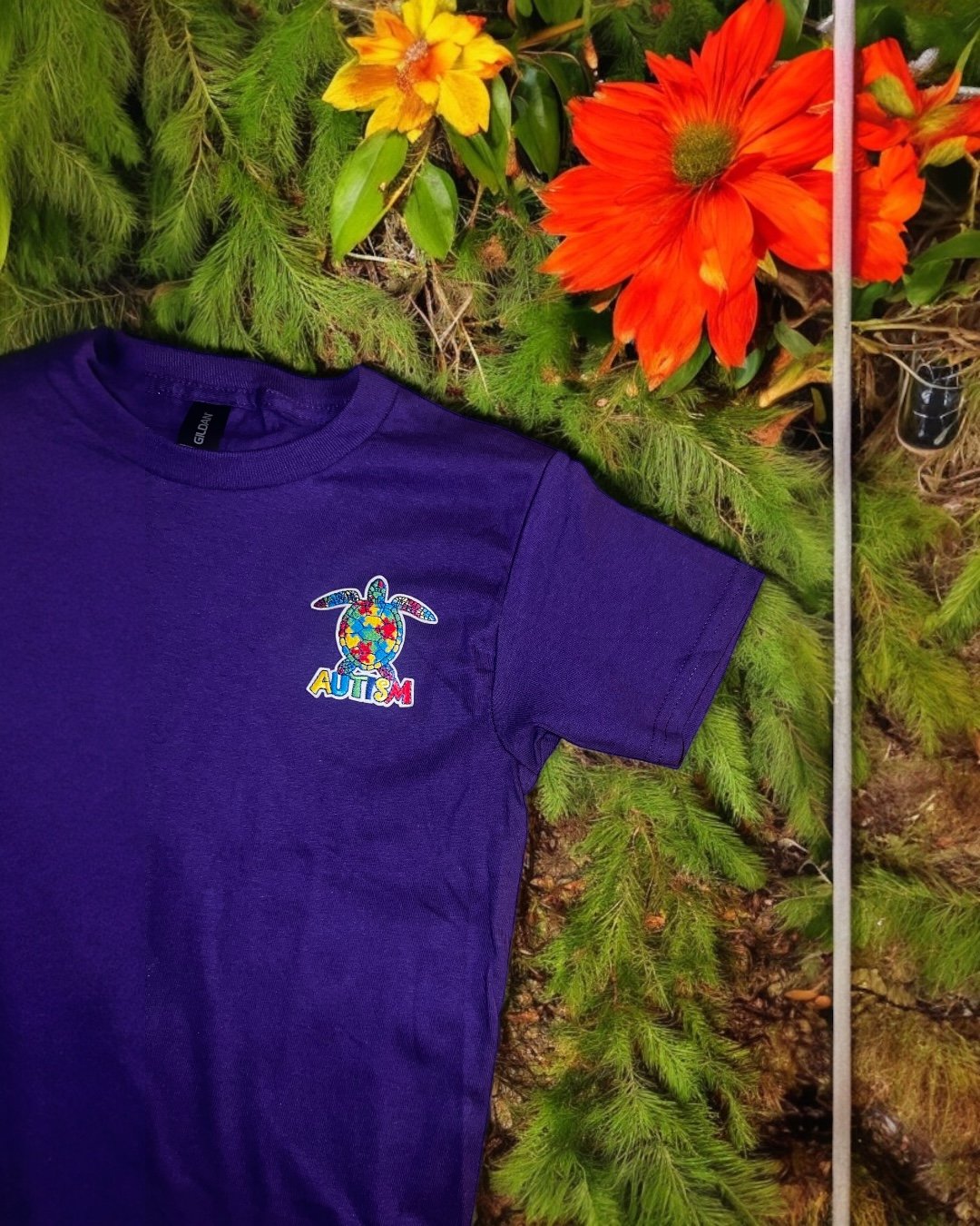 Decorated with a bright autism-puzzle turtle graphic, the Bedtime Purple Urple Tee celebrates individuality, expression, and sensory comfort in a simple, kid-friendly way.