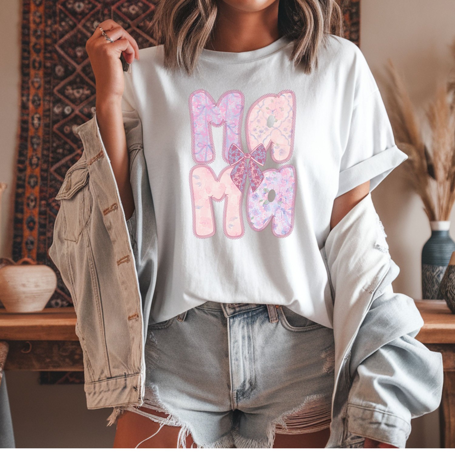 Preppy Floral Mama Png, Grandmillennial Floral Png, Mama Floral Png, Pink Mama Png, Striped Mama Png, Mothers Day Png, mom shirt, quilted mama png, bow png