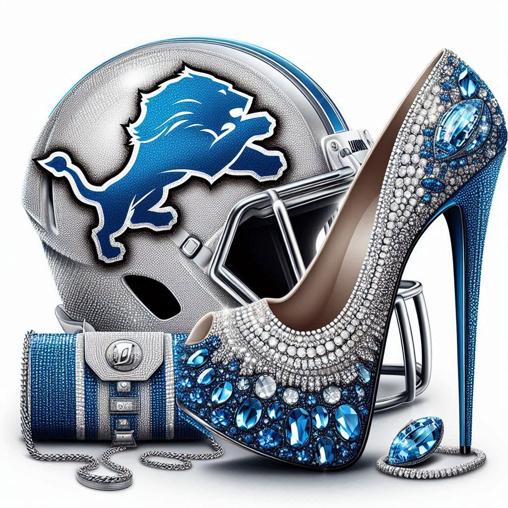"Lions Glam Game Day Digital Art – Luxury Football-Inspired Design with Diamonds & Accessories"