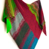 Small Shawl (red) shown in one eight-skein set of Wollmeisen Birdies Twin in colorway The African Queen, Charlie und Rosi and one skein of Pure in colorway Zimptafel