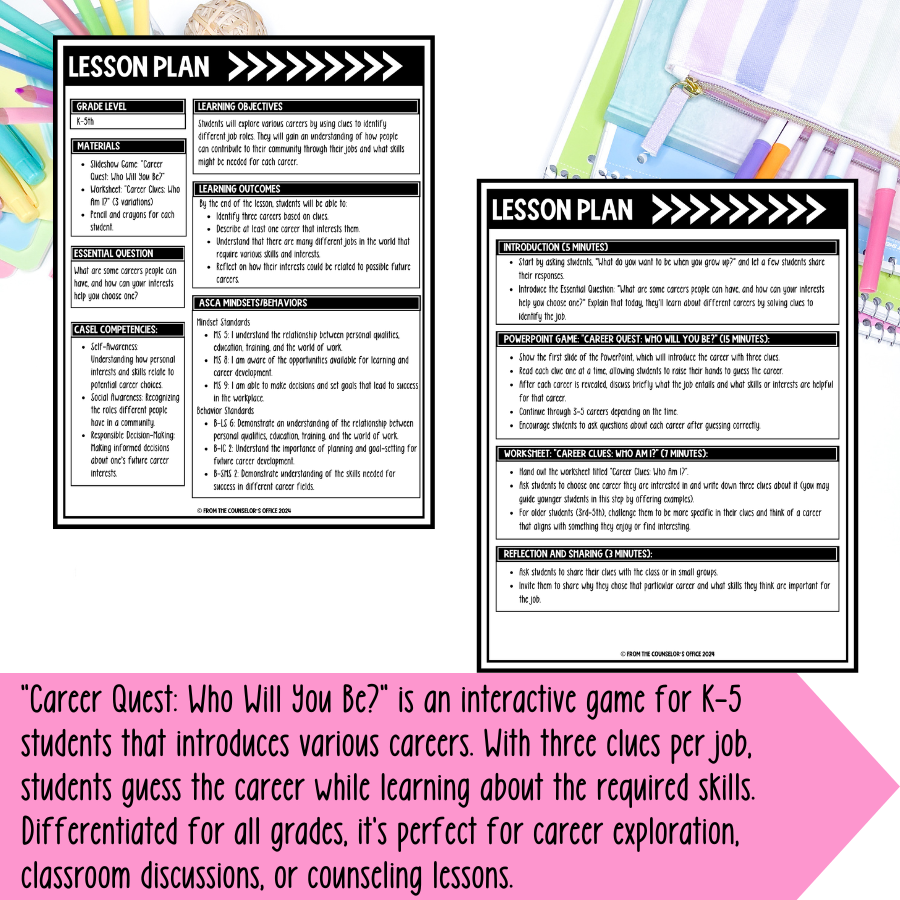 This easy-to-use, click-and-play slideshow requires no complicated setup and provides an exciting way to introduce career exploration. The community helper focus makes it relevant and engaging for students, while the guessing game adds an extra element of fun.