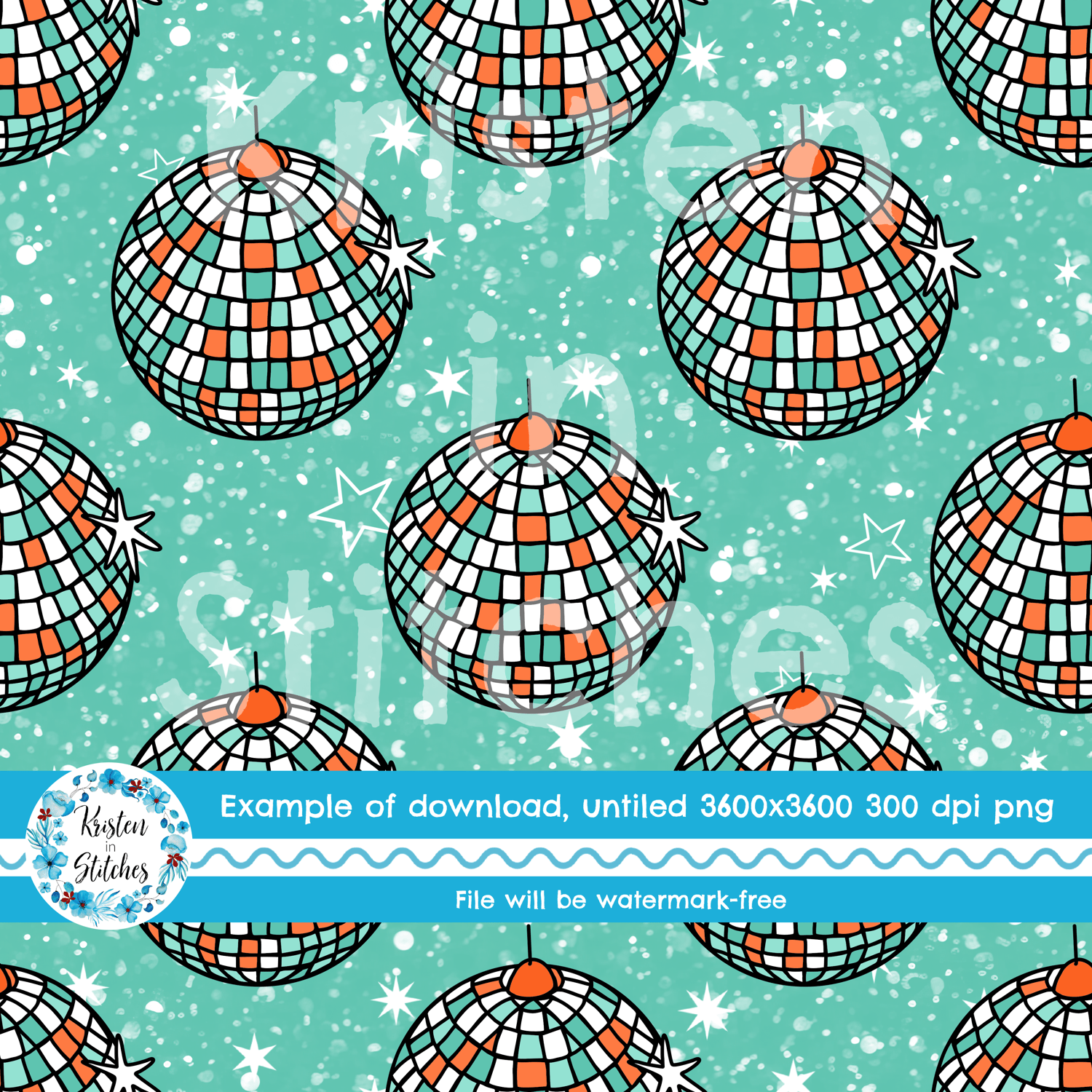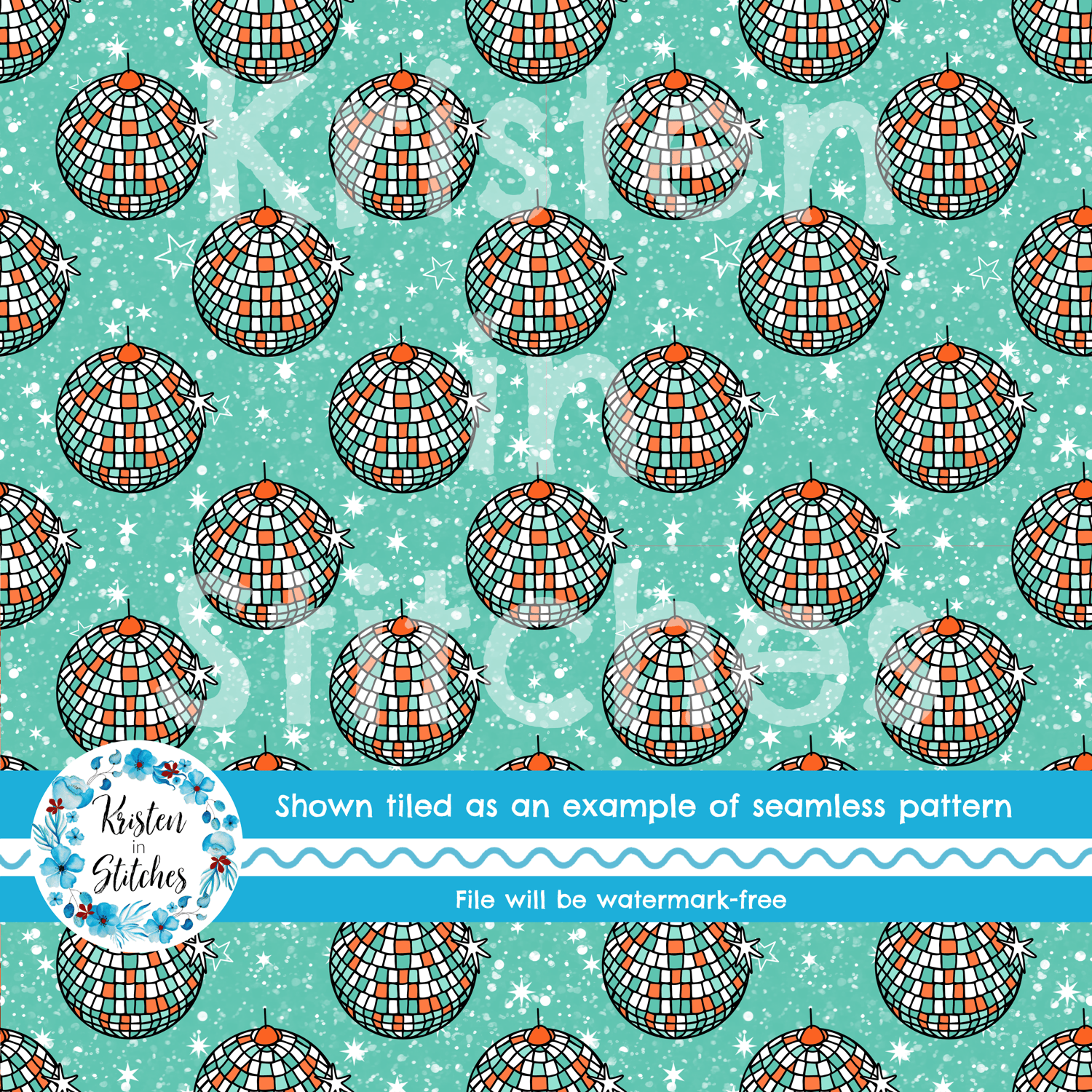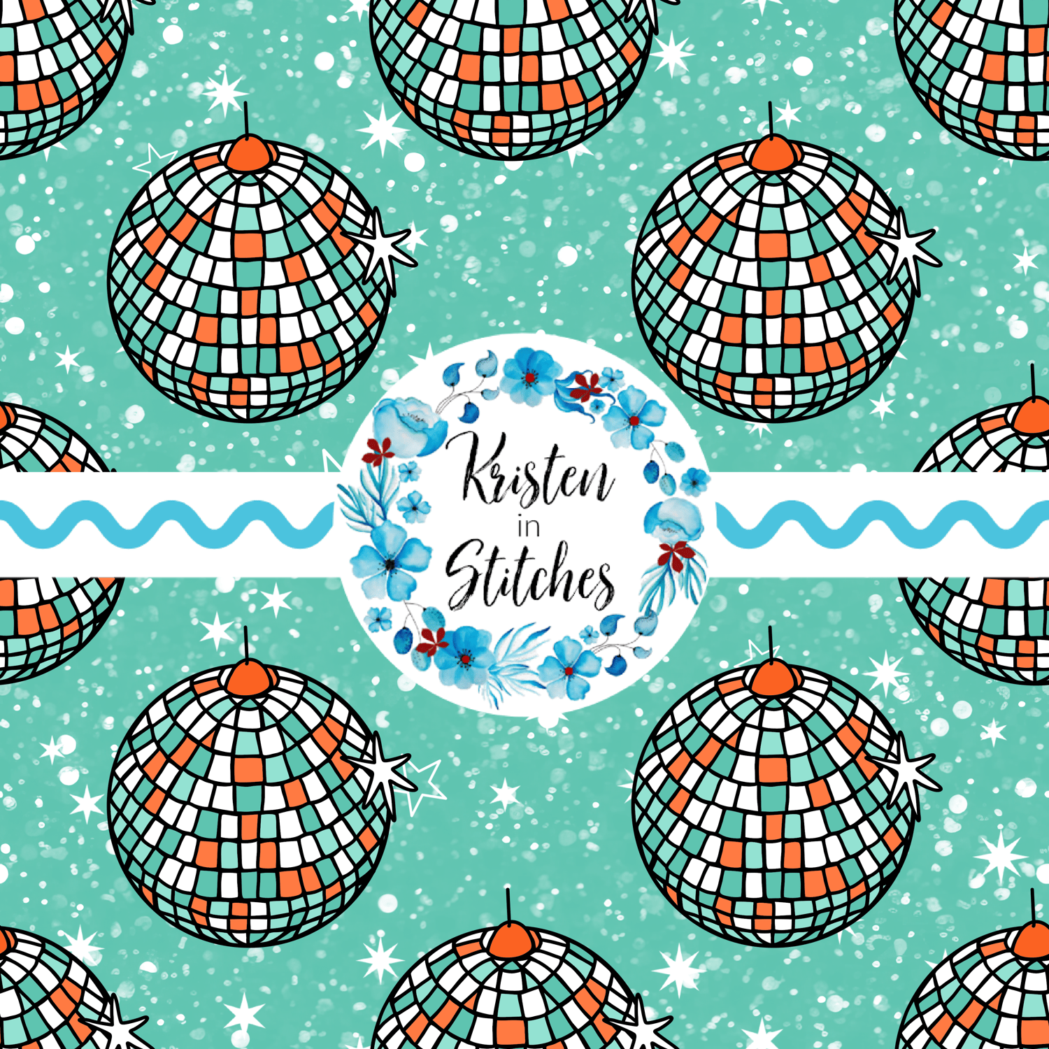 Showgirl Disco Balls on Dark Mint Sparkle Seamless Pattern