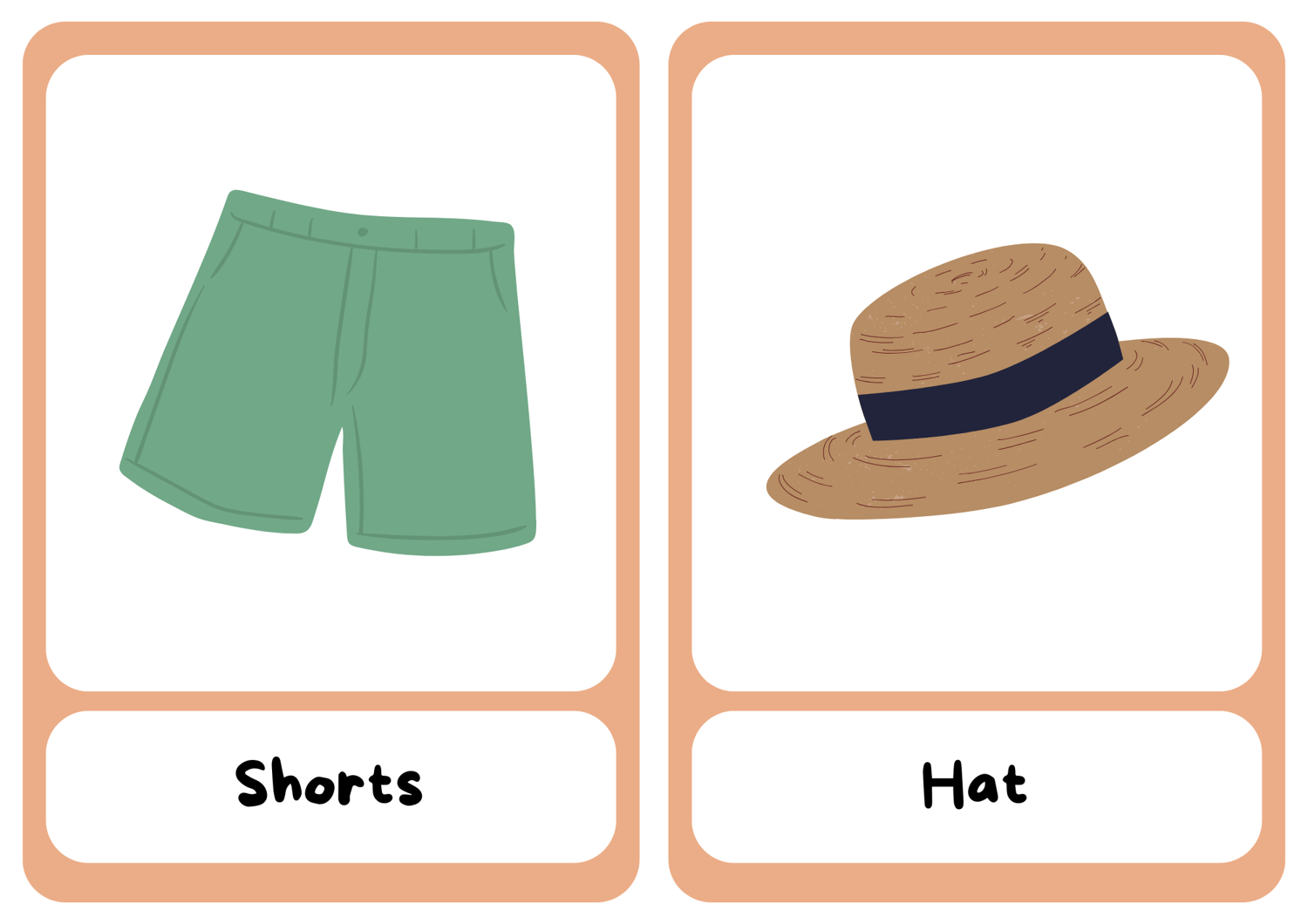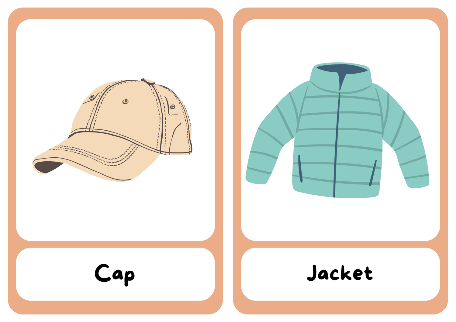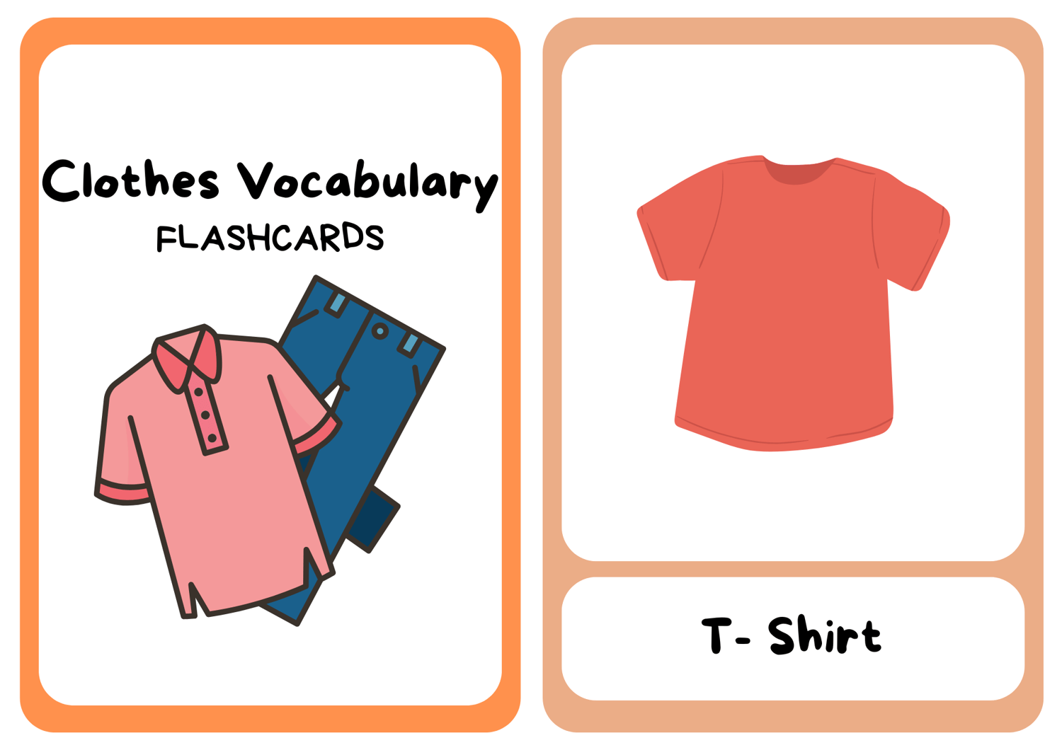 Looking to expand your English vocabulary? Our Free Clothes Vocabulary Flashcards are a fun and easy way to learn and practice words for common clothing items. With 9 carefully designed flashcards, you'll master the names of everyday clothes and accessories in no time!