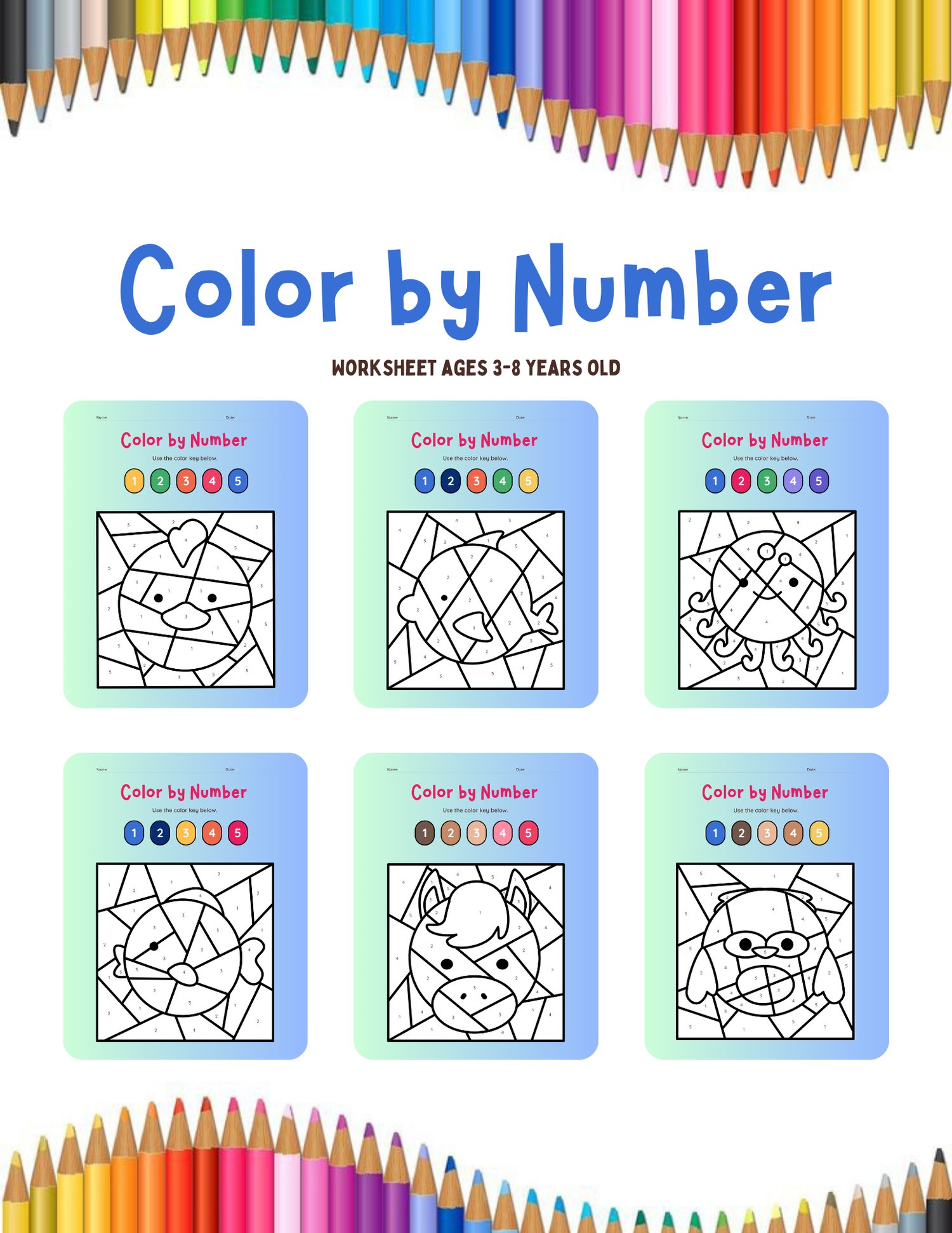 Color by Number Animals Worksheet in Colorful Illustrative Style