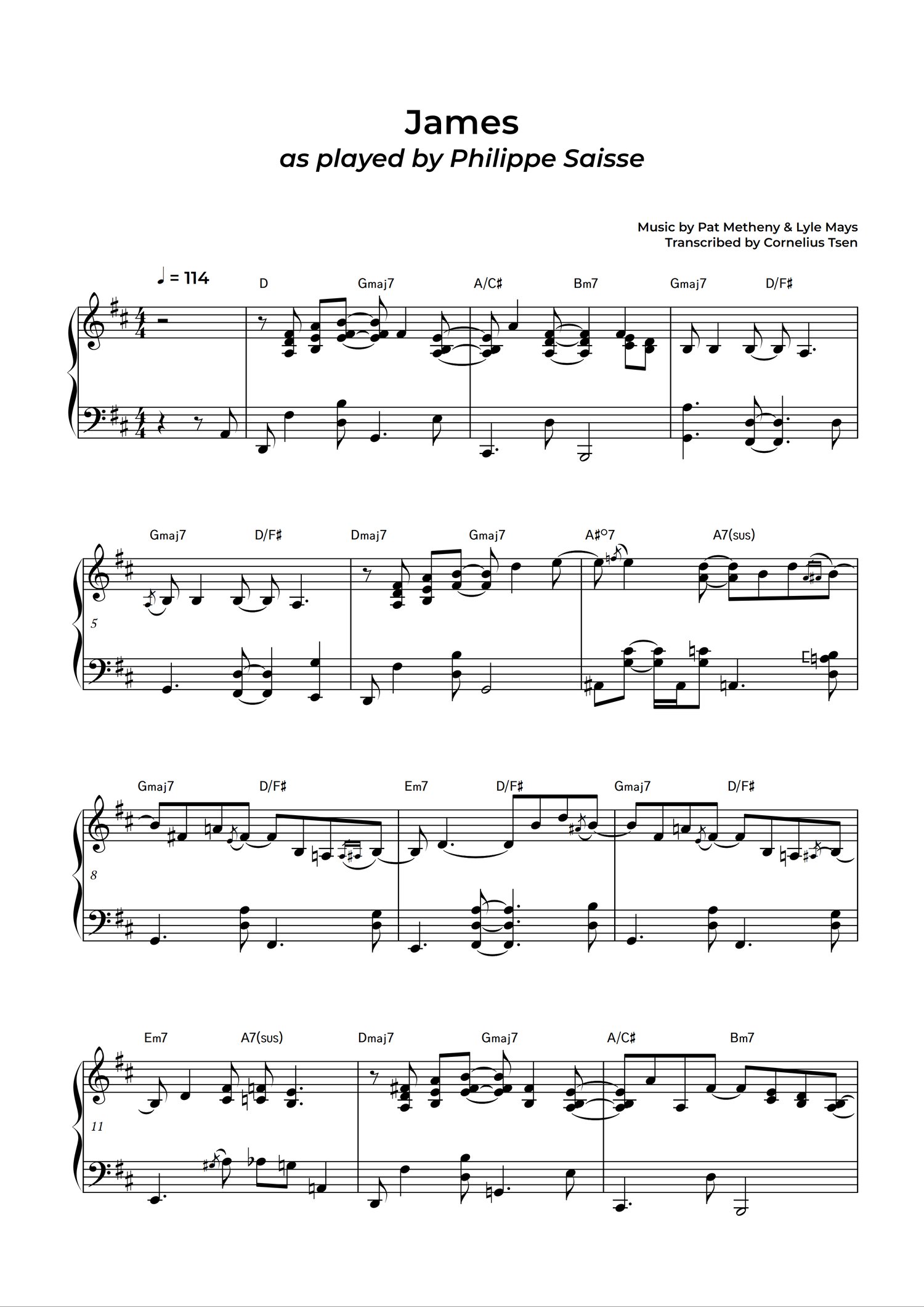 Get the full 7-page transcription of "James" performed by Philippe Saisse