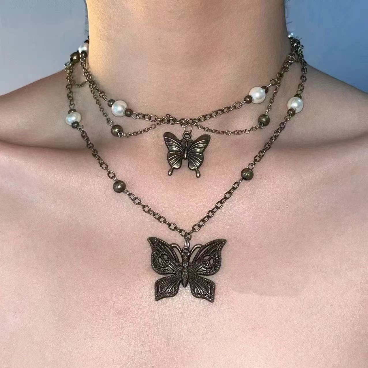 Y2K vintage style butterfly multi-layered choker