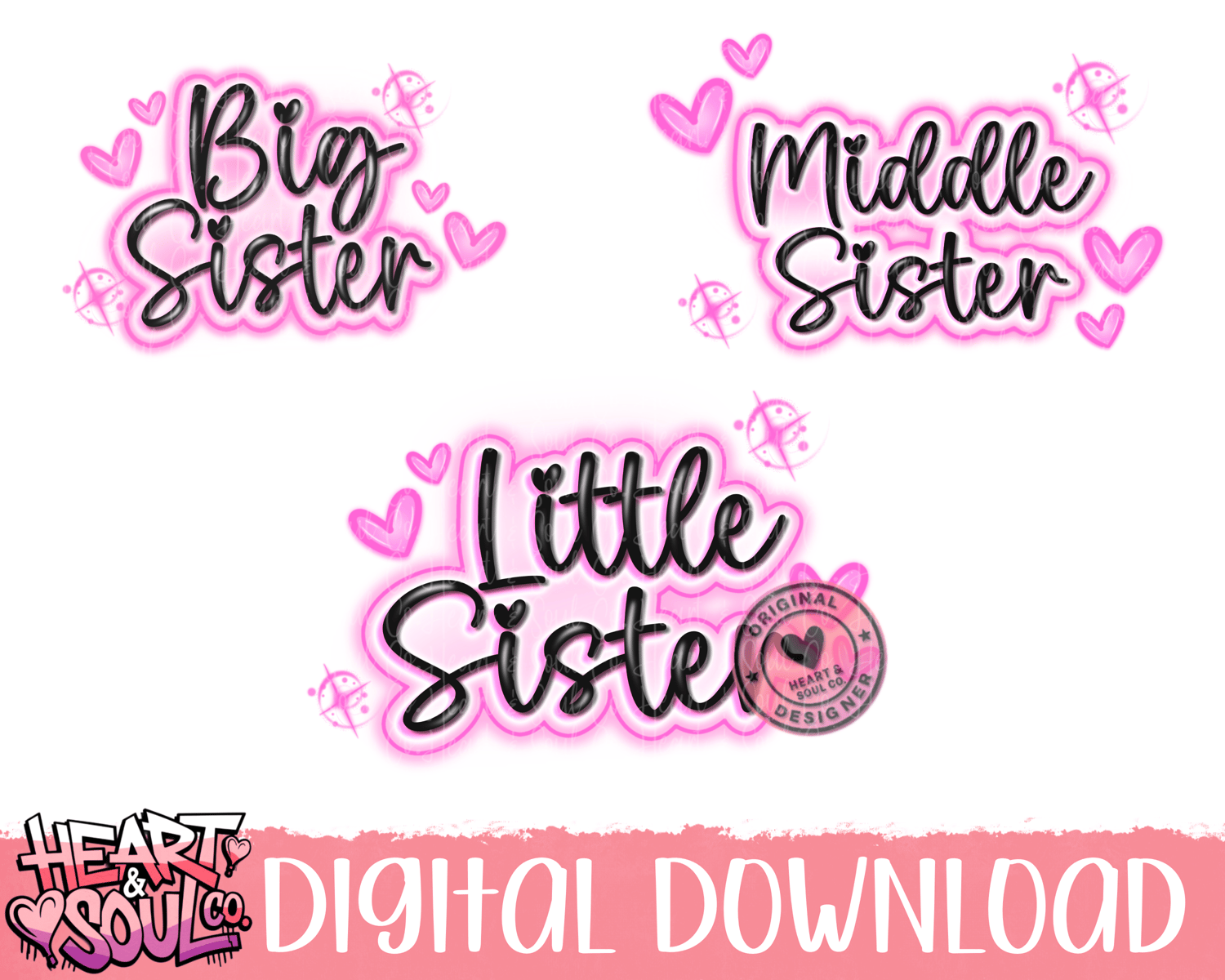 Big sister, Middle Sister, Little Sister Airbrush Png- Digital Dowload