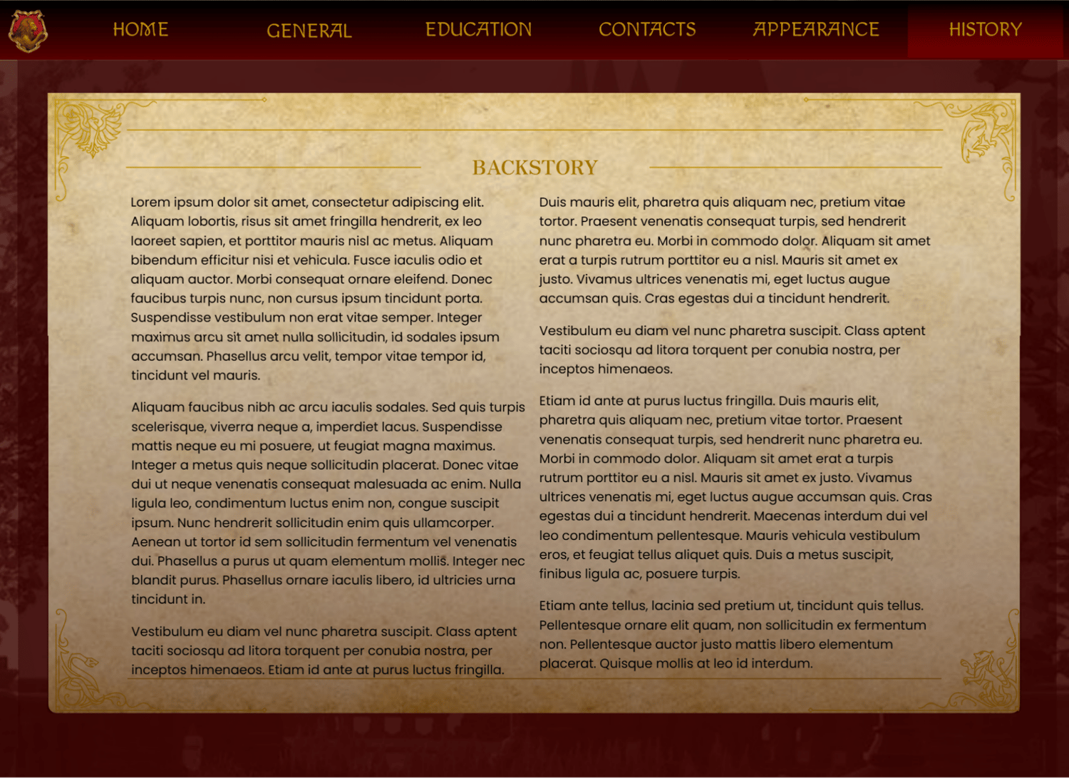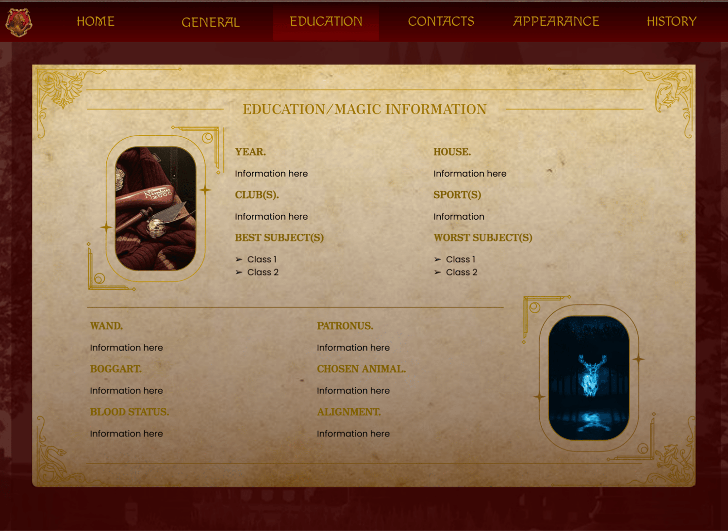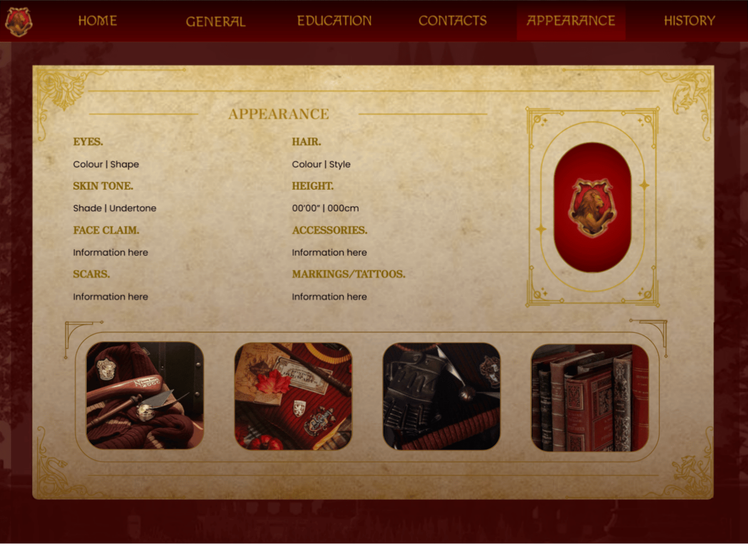 introducing "15. wonderful world of magic", a dark academia google docs oc template based off of the houses from hogwarts, with many custom drawings like icons, menus, and page details. this document includes space for general information, backstory, personality, character relationships, and magic/wizardry information, themed around the aesthetic of the house of choice. feel free to edit this as much as you wish as long as you do not remove my credit.
