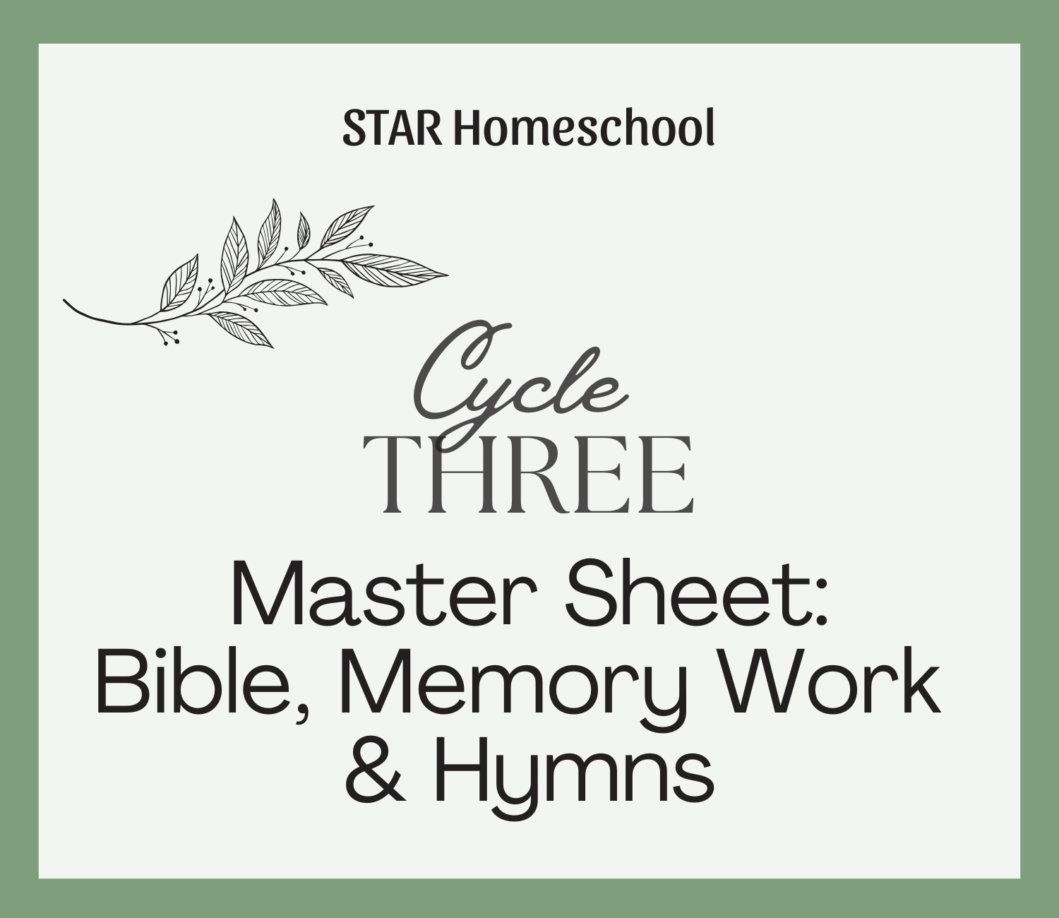 Cycle 3 Master Sheet: Bible, Memory Work & Hymns