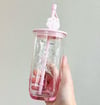 Material: Glass (cup), Plastic (straw and lid)