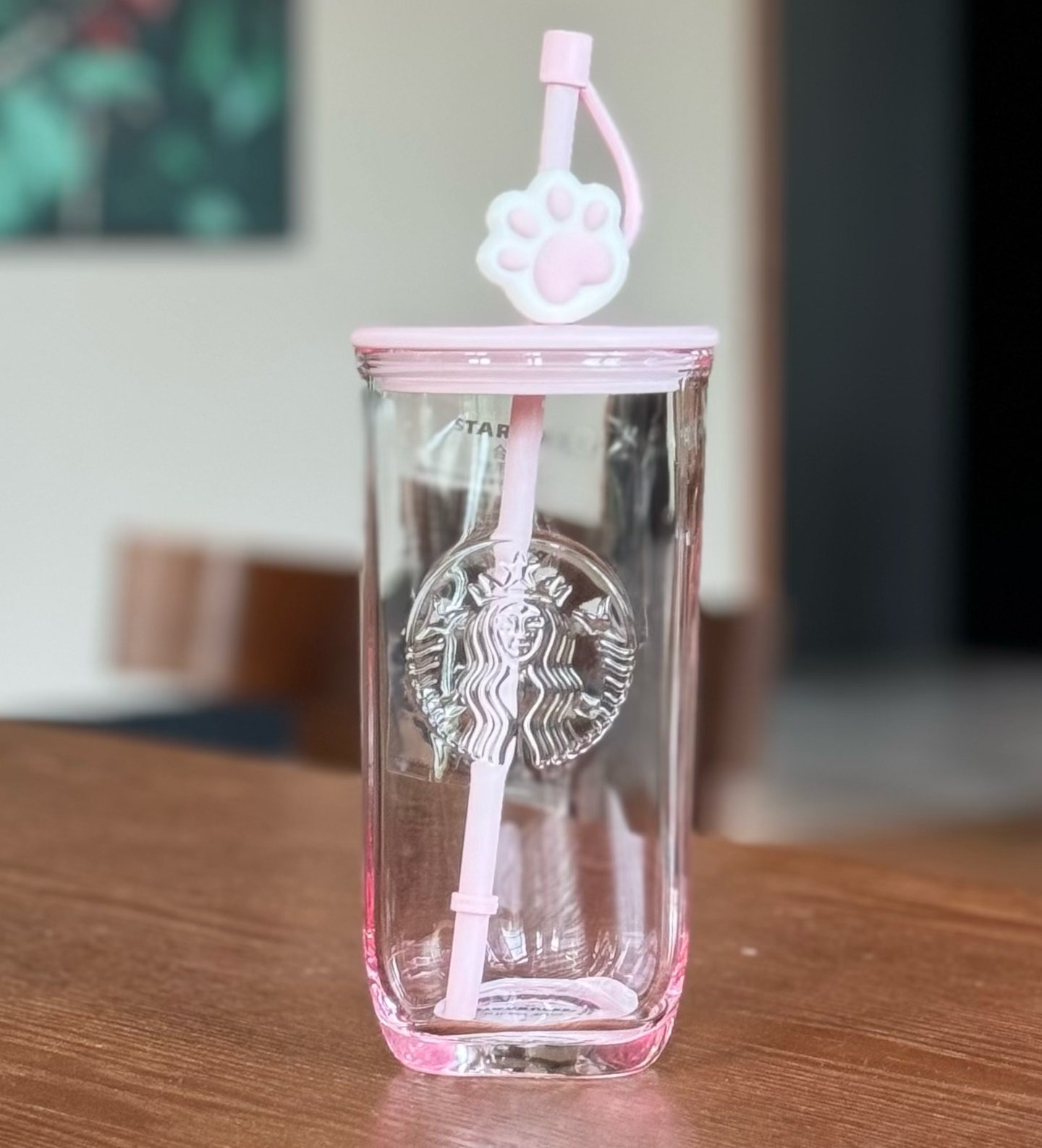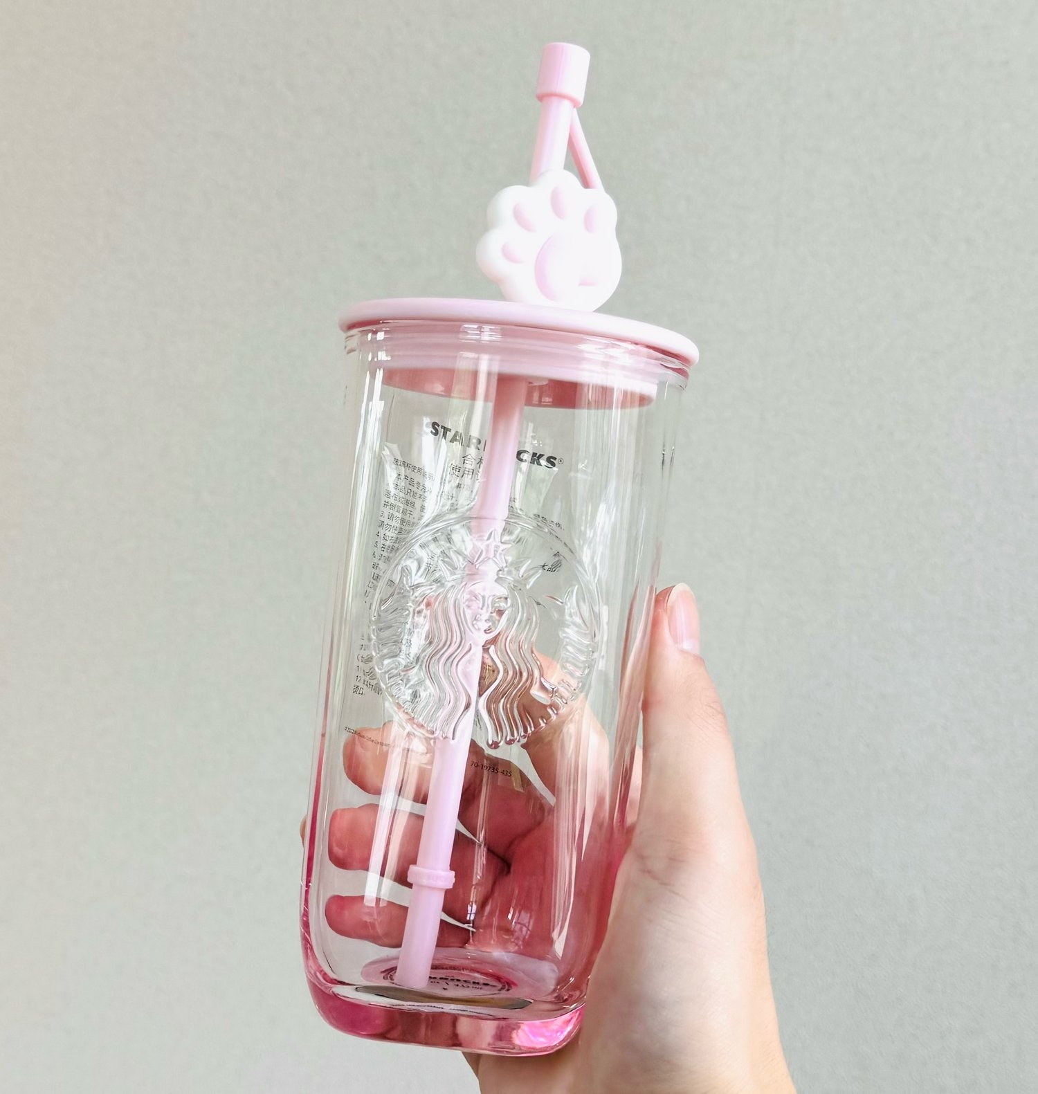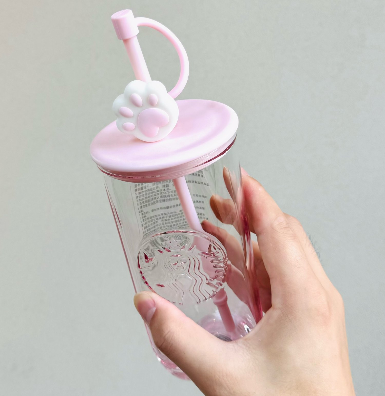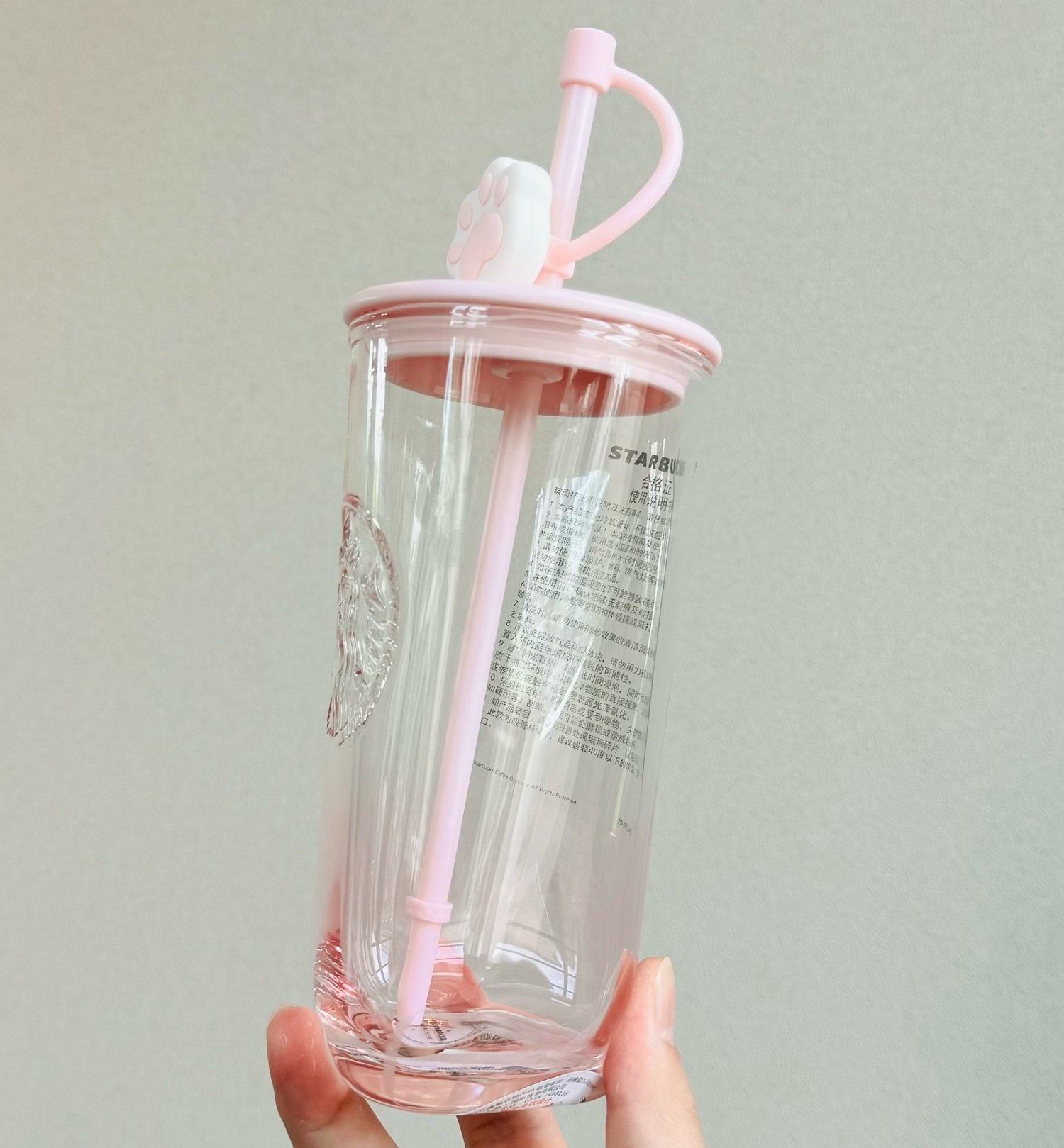 2023 Starbucks China 16oz Pink Triangle-bottom Glass Cup with Cat Paw Straw Topper