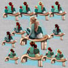4 designs for mum, son and daughter; blonde, redhead, brunette and darker skin