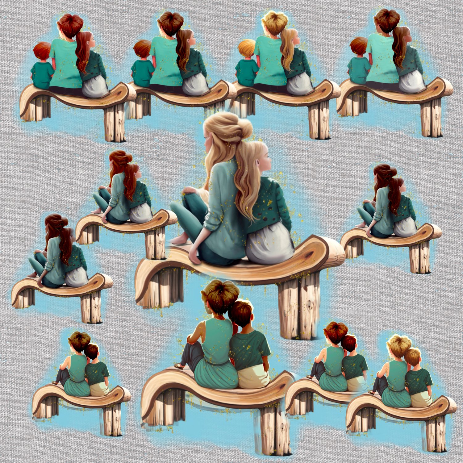 Mother’s Day, grandma, nanny etc: mother, daughter; mother, son; mother, son, daughter. 12 PNG files. Darker skin option included. With gold embellishments.