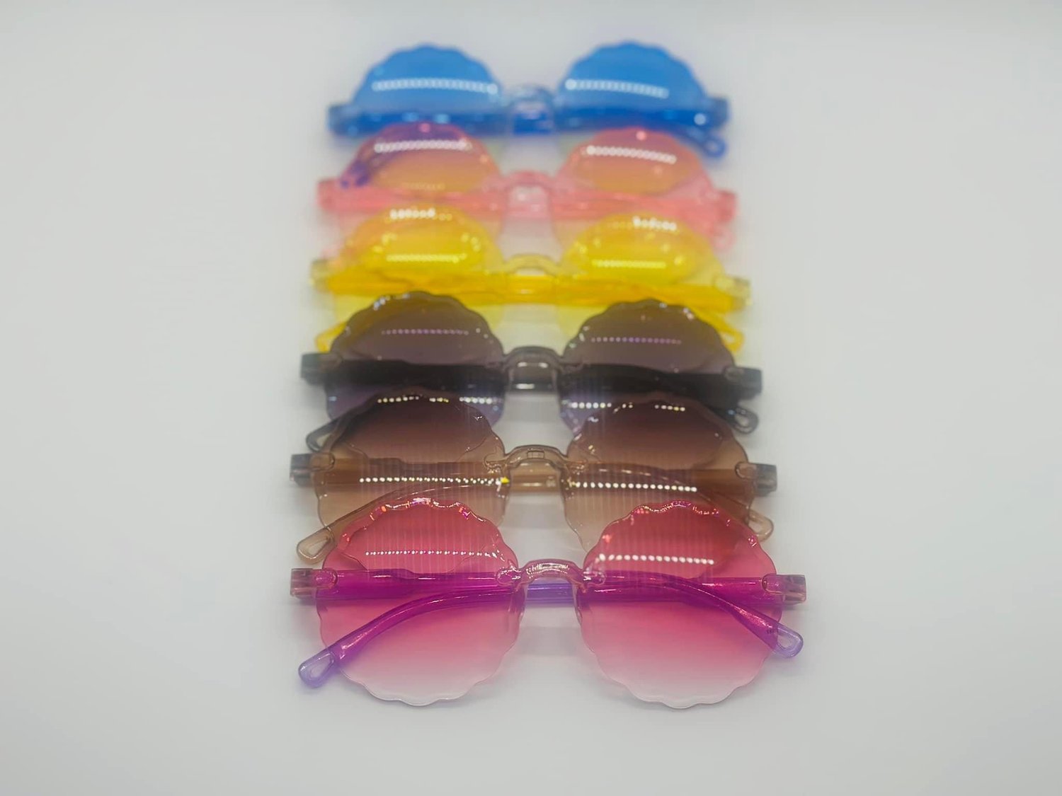 Our fun and fashionable children's sunglasses come in various colors and styles, designed to protect little eyes while adding a playful touch to any outfit. Browse through our collection, featuring these adorable styles (listed in the following order):