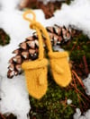 The pattern comes in three sizes (all sized to be decorations, not something a person would wear), and the finished mitts will be between one and three inches across.