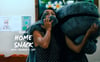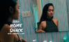 Jasmine wears black mules, also wears jean shorts, and a dark top.