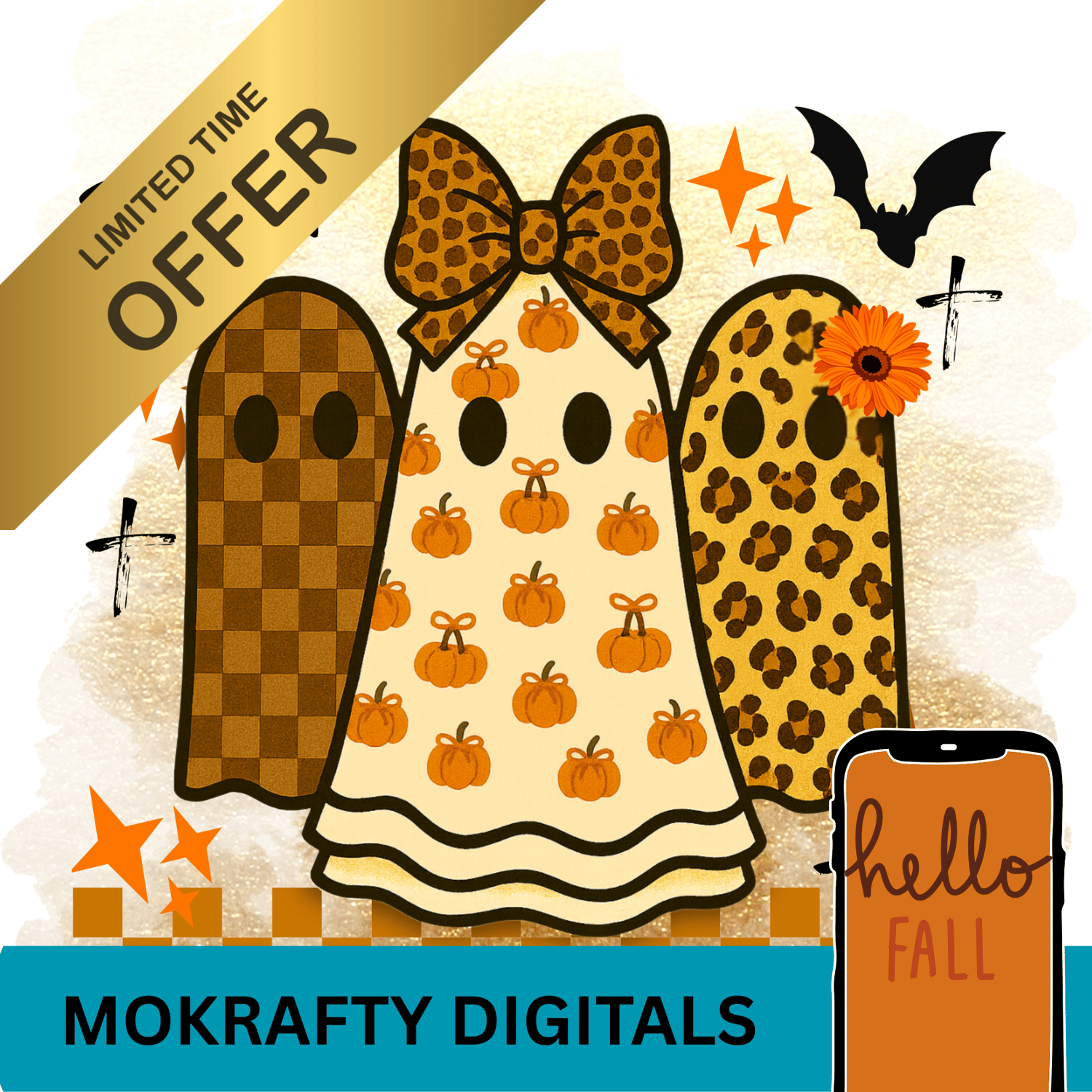 Get ready for spooky season with this adorable and stylish ghost trio! Our Spooky Season Ghost PNG is a must-have for all your fall and Halloween projects. Featuring three unique ghosts with charming patterns—leopard print, classic plaid, and a sweet pumpkin design—this file adds a festive and fashionable touch to anything you create.