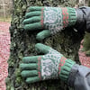 Method: Featuring cute owls, their distinctive call, and leaves, these stranded colorwork fingerless gloves are knit in the round from the cuff down. They have a thumb gusset created by yarn overs and can be worked in three or more contrasting colors.