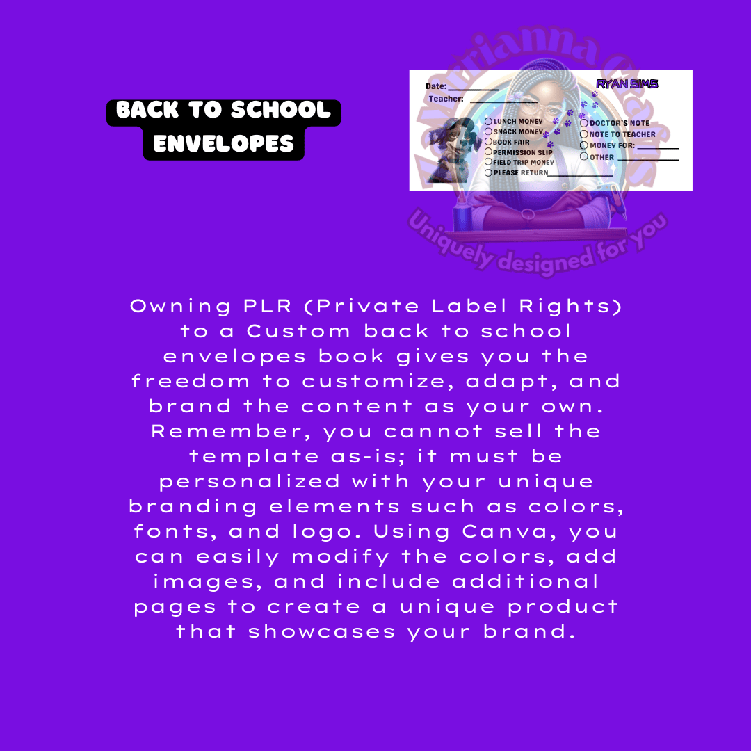 Owning PLR (Private Label Rights) to custom envelopes allows you to customize, adapt, and brand the content as your own. Remember, you cannot sell the template as-is; it must be personalized with your unique branding elements, such as colors, fonts, and logo. Using Canva, you can easily modify the colors, add images, and include additional pages to create a unique product that showcases your brand.