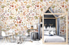 Meadow watercolor pattern - A whimsical dance of roses and wildflowers in warm hues, evoking dreams of enchanted gardens under a gentle sun.