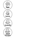 - 4 life cycle stage circles: Eggs, Larva, Juvenile, Adult