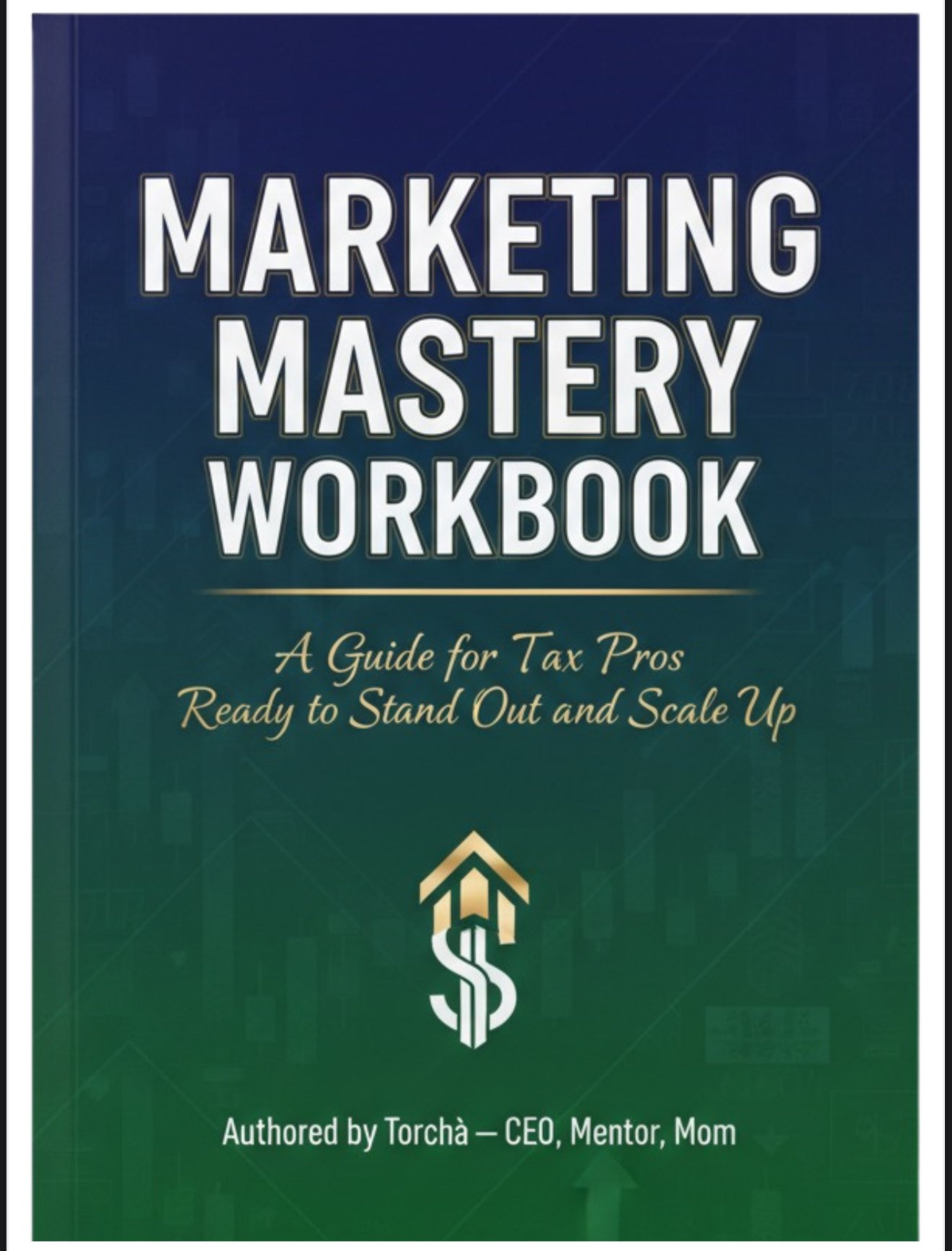 Every section includes guided exercises, reflection prompts, and Torchá’s insider tips to help you put strategy into motion immediately. Whether you’re building your first tax business or scaling your team, this workbook will help you show up as the leader you were meant to be.