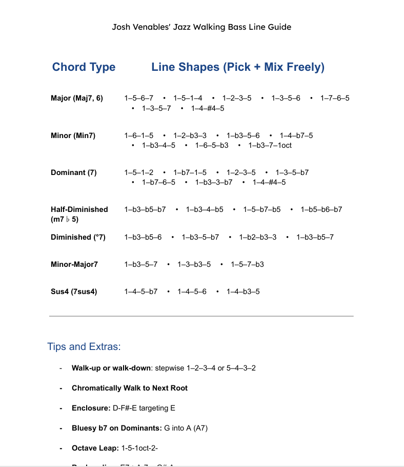Walking Bass Cheat Sheet