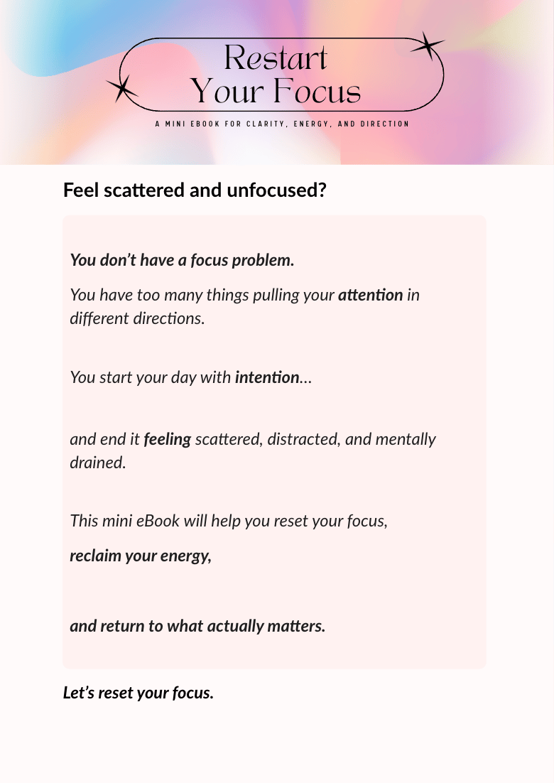 This mini eBook will help you reset your focus, regain control over your attention, and finally get clear on what actually matters.