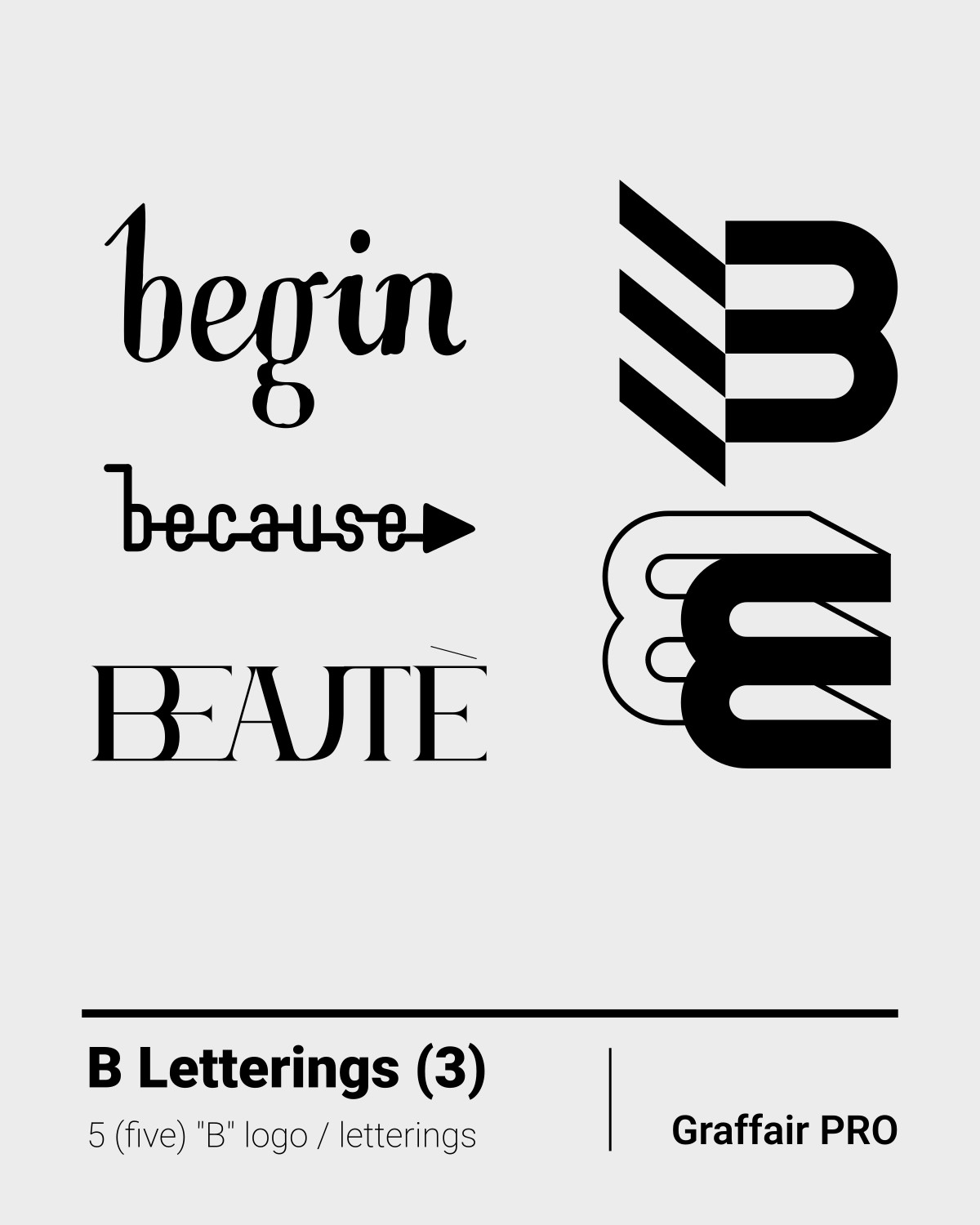B Letterings (3): The third set of "B" logo/letterings with 5 (five) designs. These letterings are included amongst 800 ones in the "800 SVG Letterings" bundle edition.