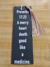 Grey Leather bookmark with Proverbs 17:22 Bible verse.