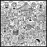 A high-quality PDF of a page from my coloring book; Doodle Worlds Book 1.
