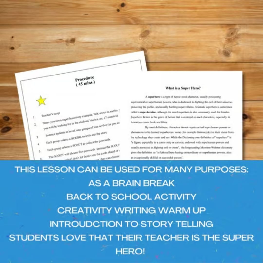 "Truth, justice and the American way." Thanks, Superman! Who doesn't like super heroes? This storytelling lesson and exercise, suitable for grades 3-8, is great for a drama class, reading group, Language Arts or storytelling unit. Students work cooperatively, using post cards and creating a short story about someone SPECIAL (hint, hint) in their classroom.
