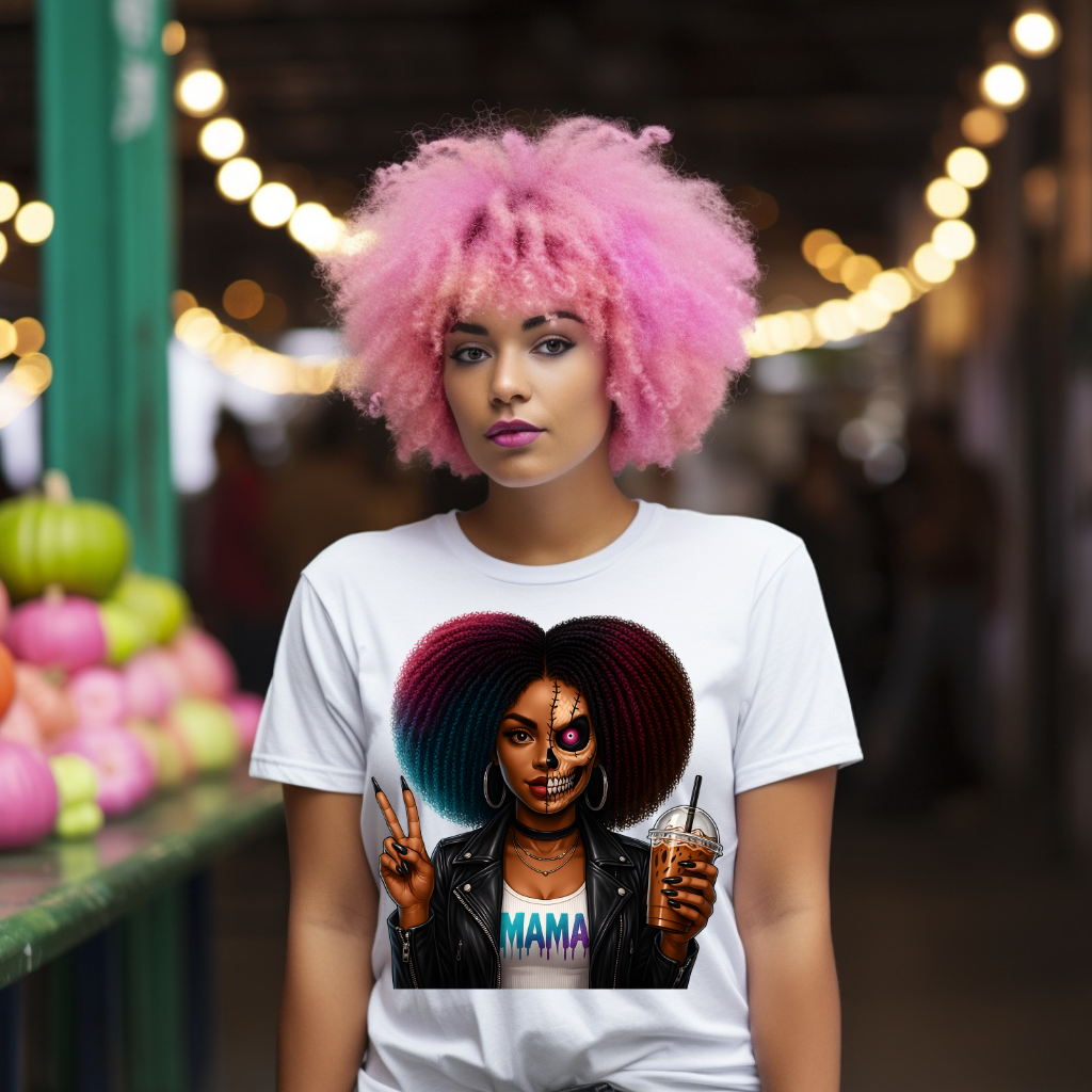 Bring spooky mama vibes to your Halloween projects with this individual Halloween Mama Coffee Skull PNG design🎃☕. Perfect for sublimation, t-shirts, mugs, tumblers, and all your DIY crafts!