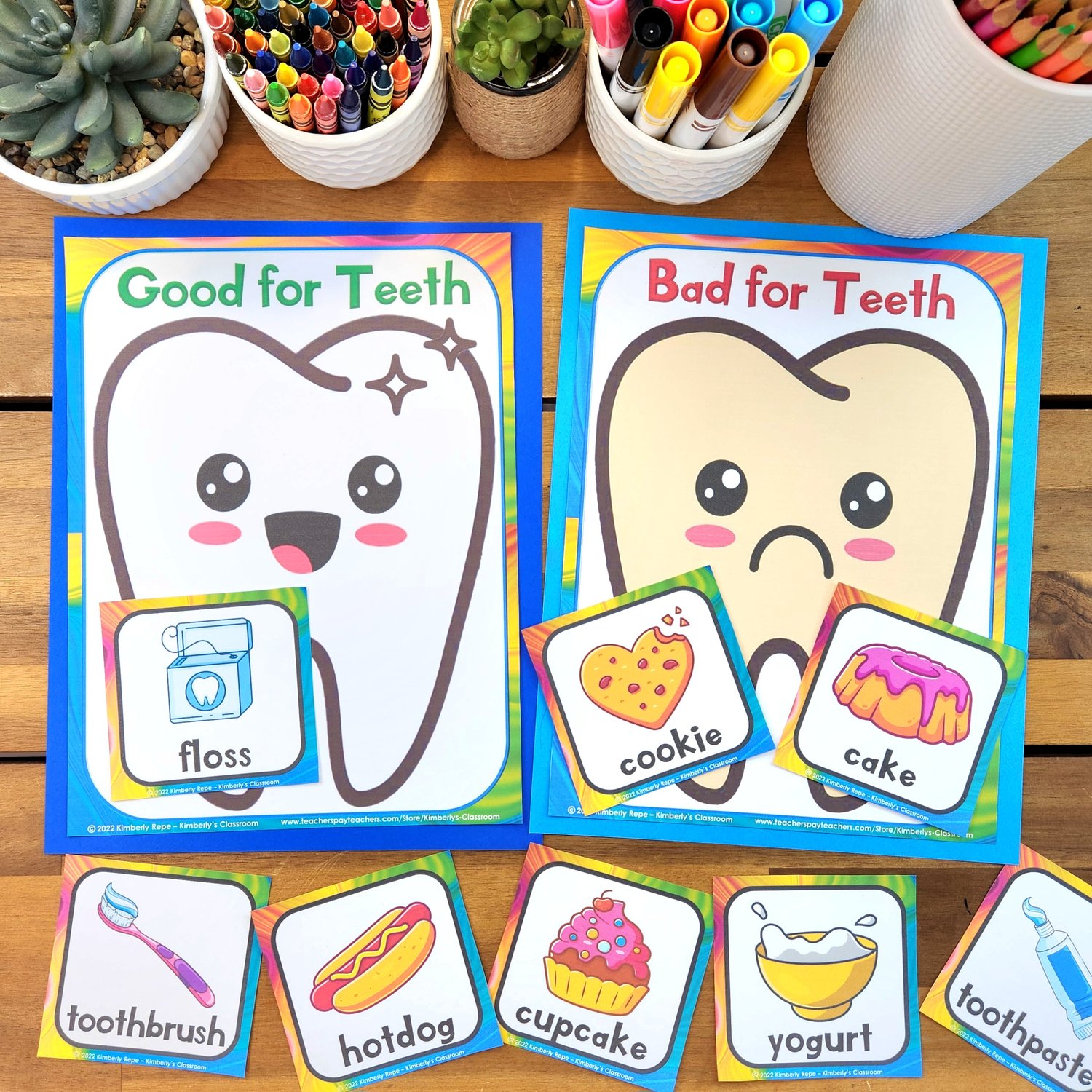 ✏️Students can use the sorting mats, charts and mini cards to identify and sort healthy vs. unhealthy foods and habits for teeth. You could also use this activity in a whole group lesson to teach about dental health.