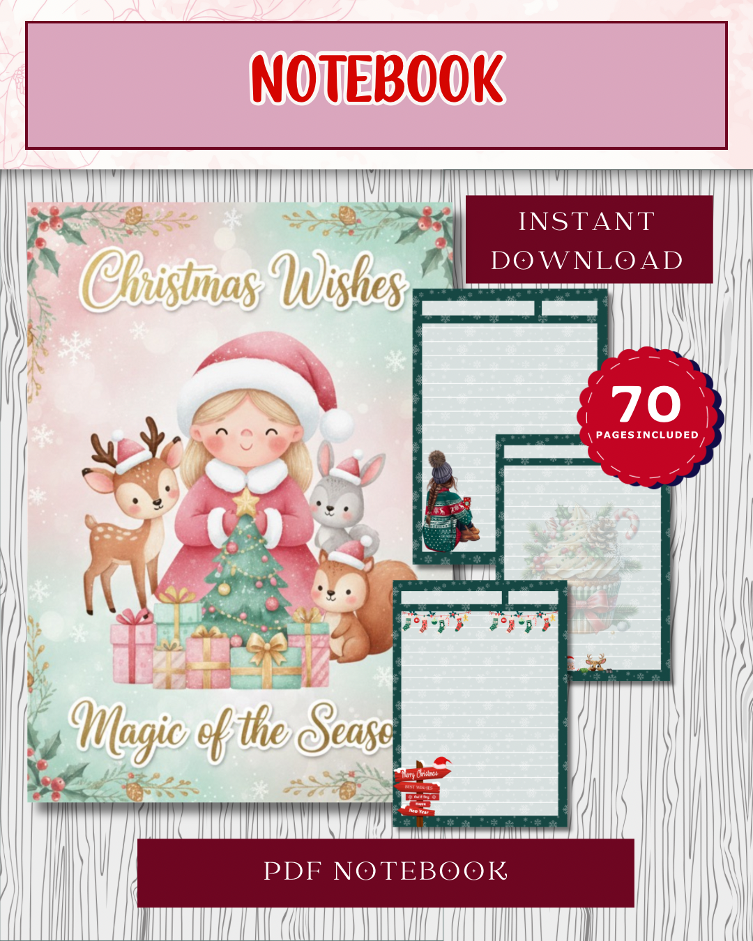 Christmas Wishes Notebook – Magic of the Season | 70 Pages Printable PDF