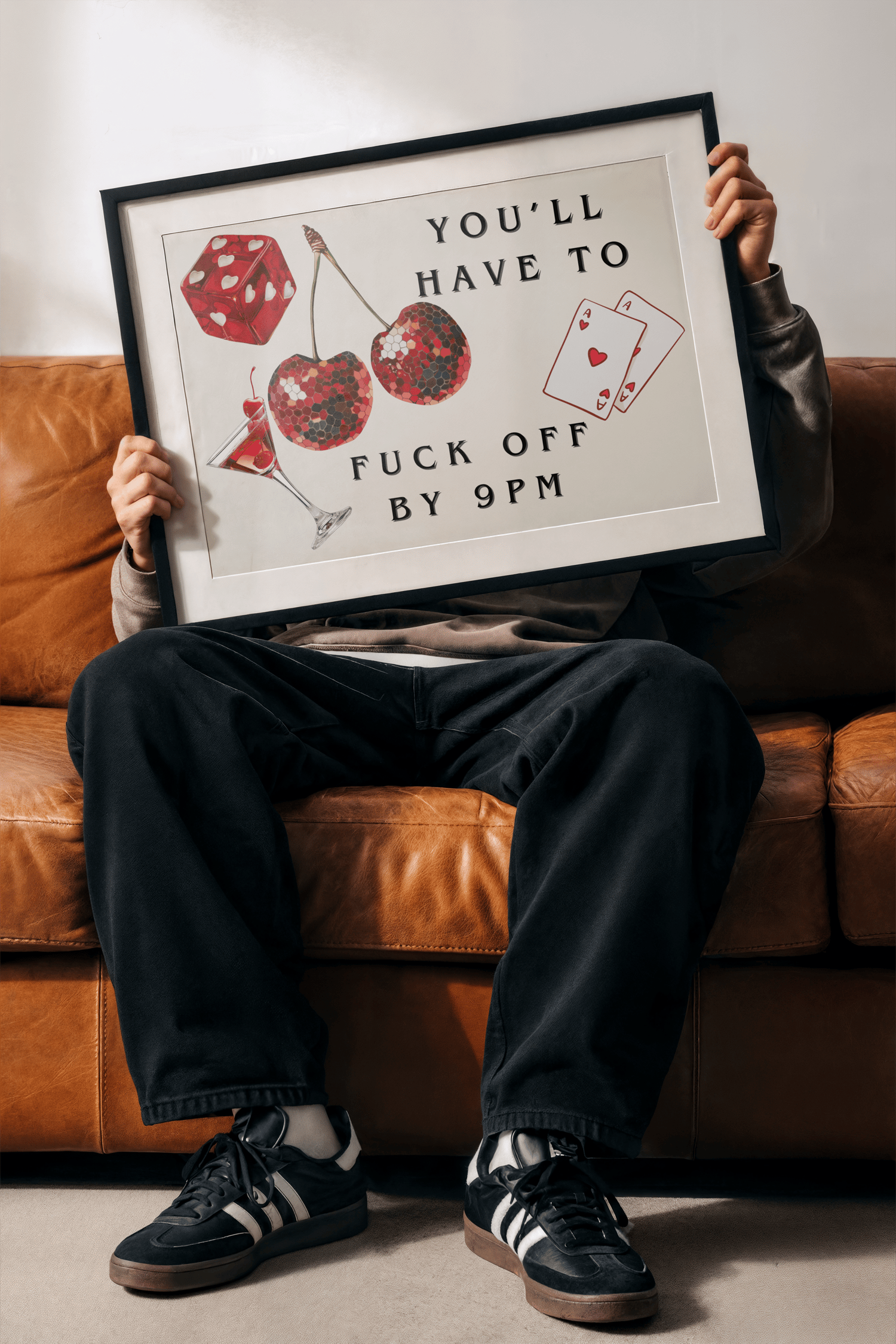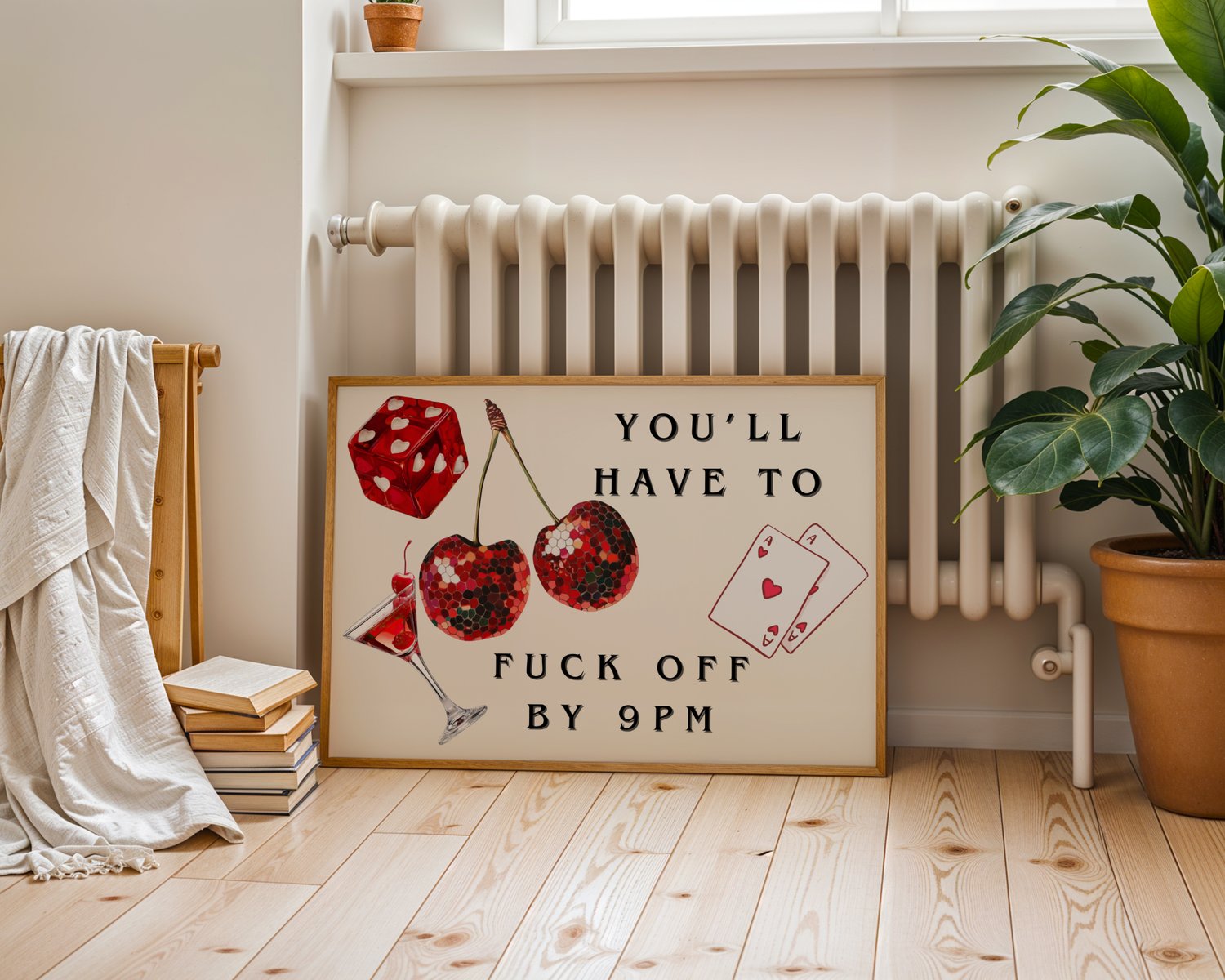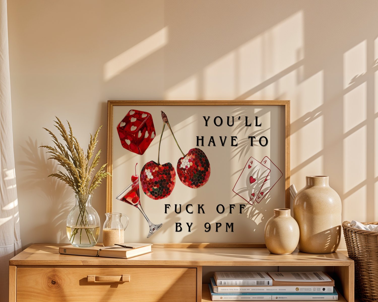Bring some personality and laughs to your walls — grab your “You’ll Have to F*** Off By 9” poster today!