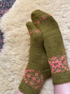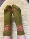 The Suzanne Socks are a little mystical—stars align and paths converge in these intricate motifs. Worked from the top down, the Suzanne Socks have a stranded colorwork star-and-diamond motif on the leg, with a diamond variation around the toe.