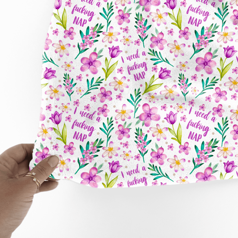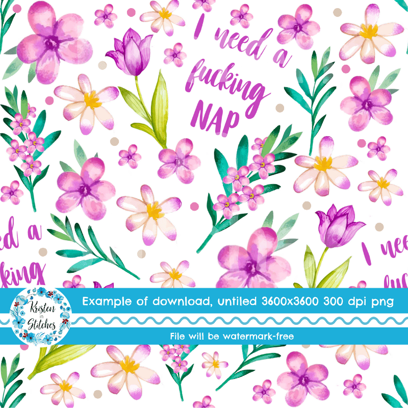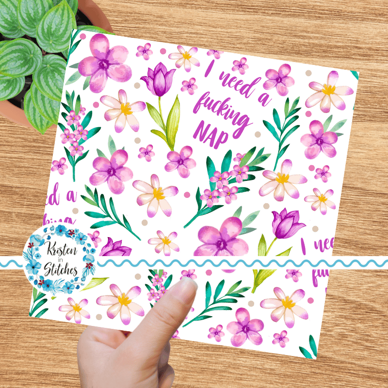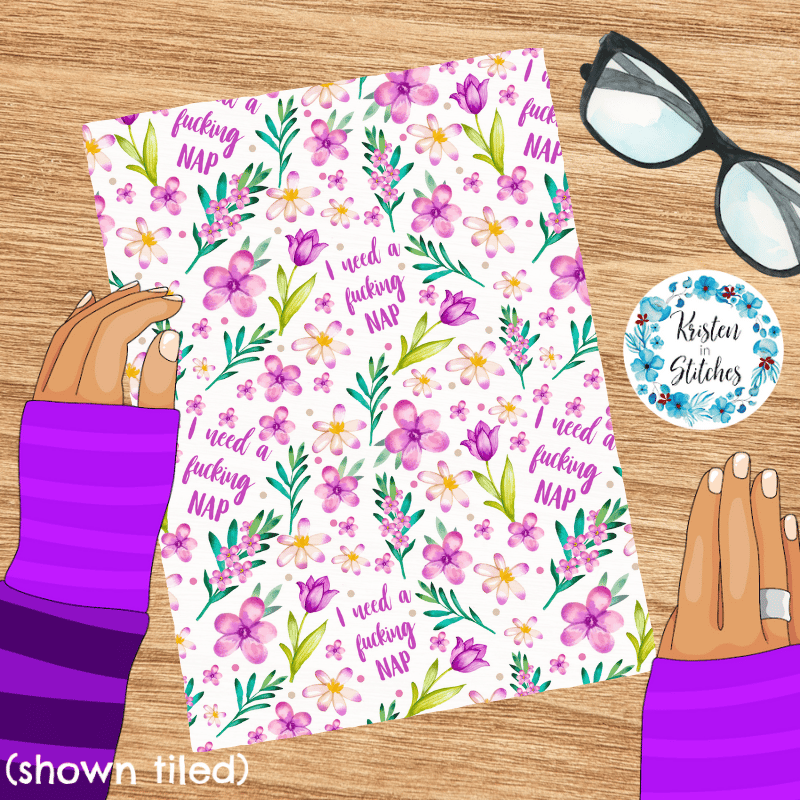 I need a Fucking Nap sweary floral pattern with pink and purple flowers.