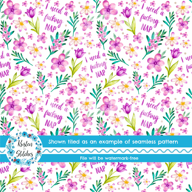 I Need a Fucking Nap Swear Word Floral Seamless Pattern, Pretty Profanities
